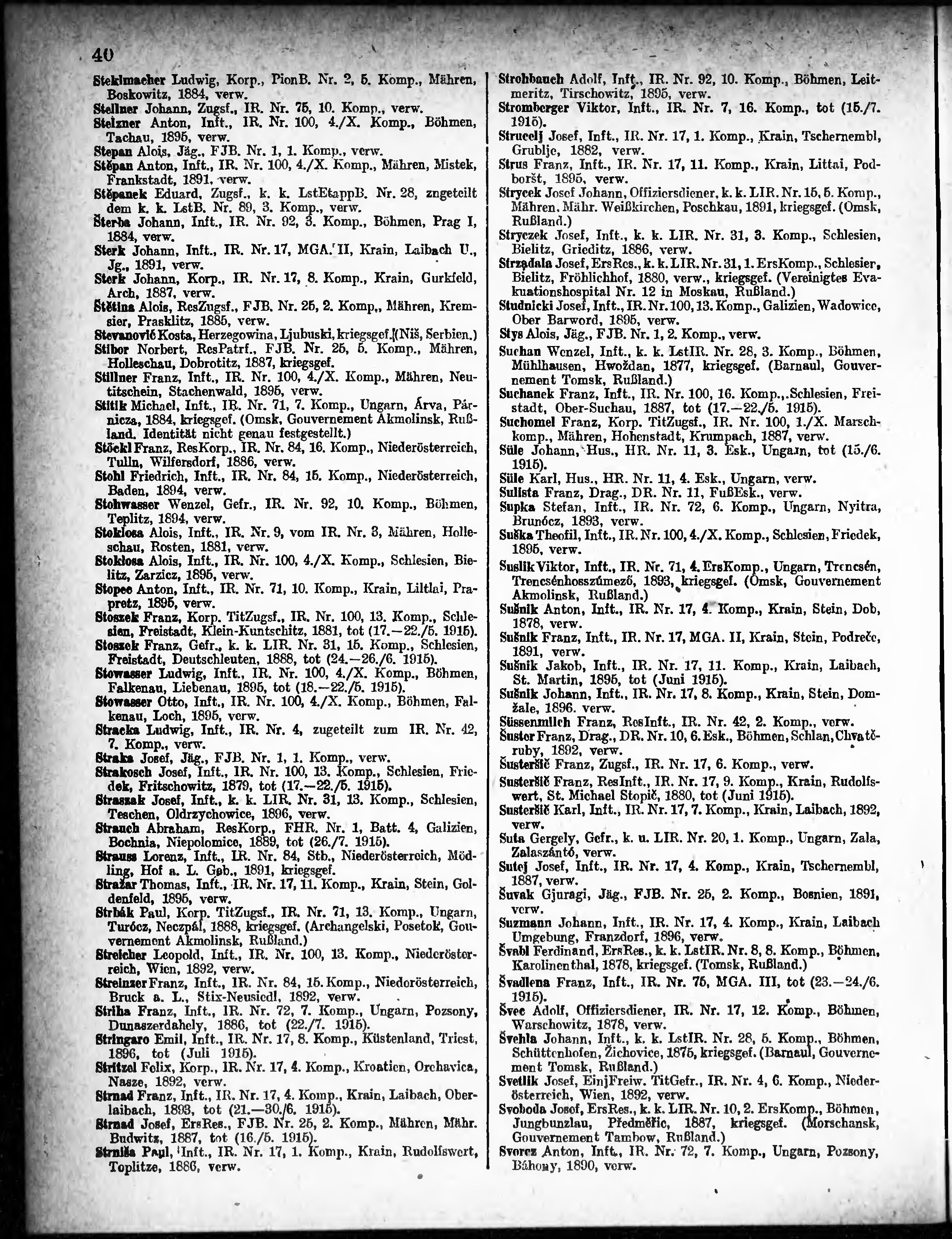 Verlustliste ausgegeben am
