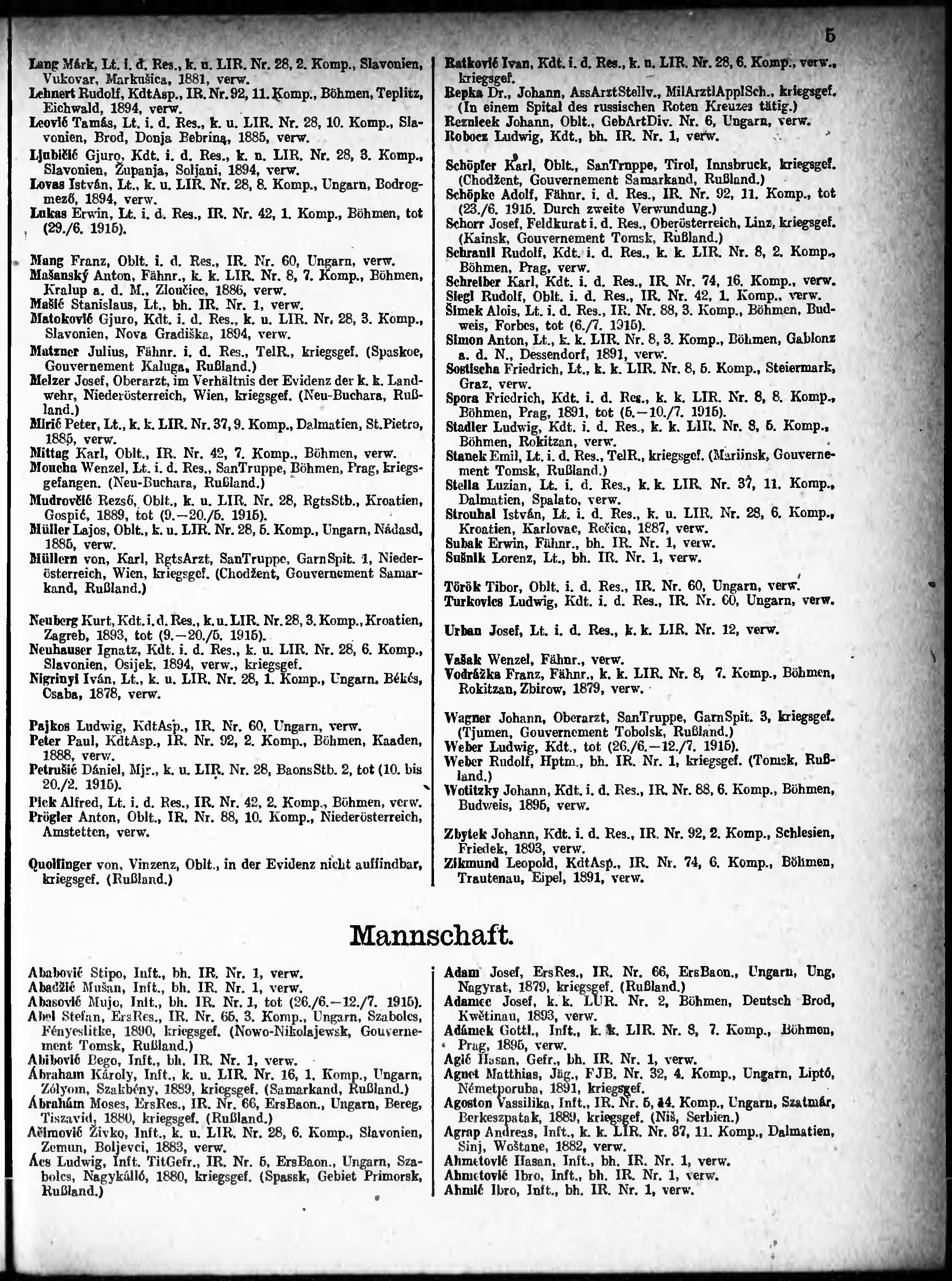 Verlustliste ausgegeben am