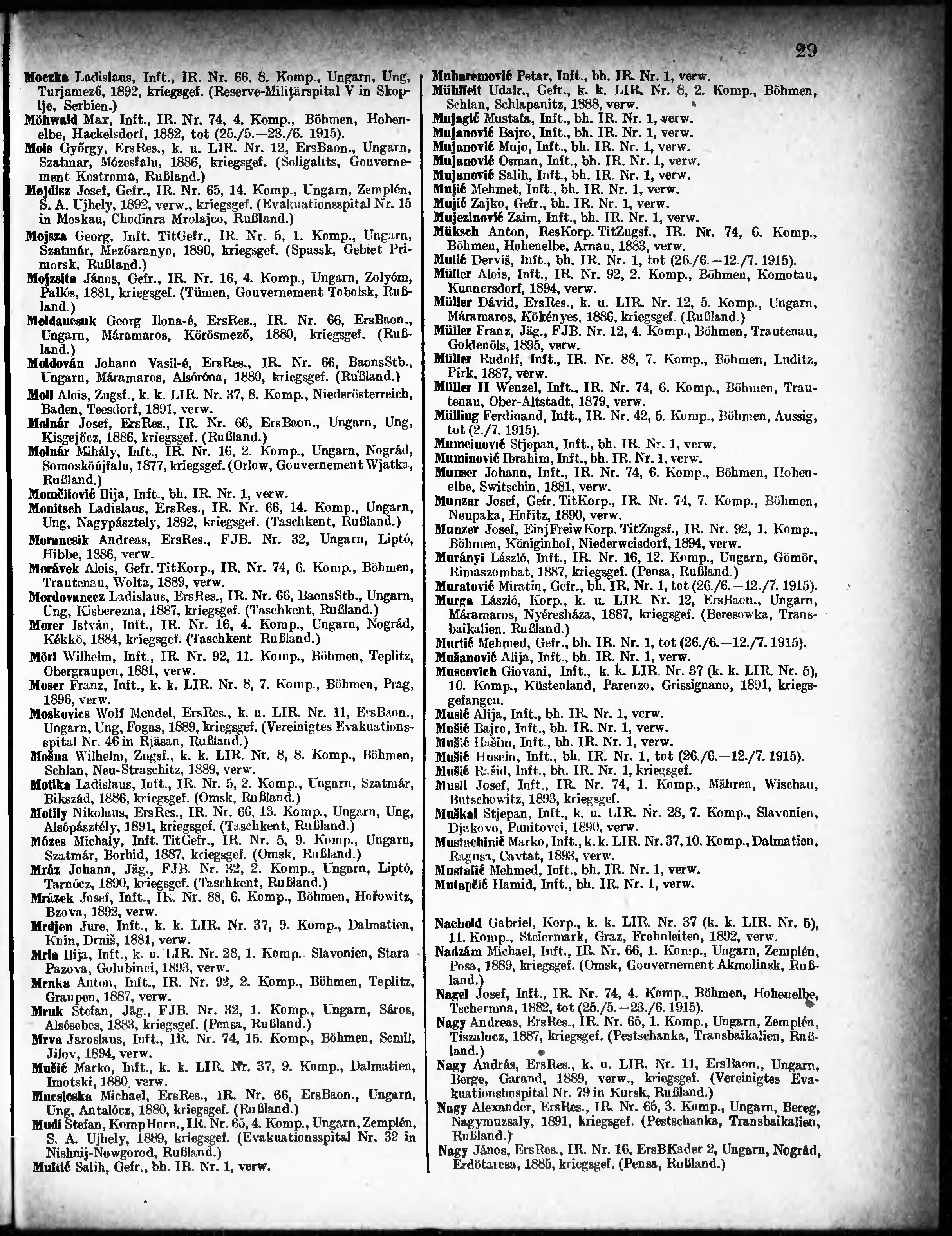 Verlustliste ausgegeben am