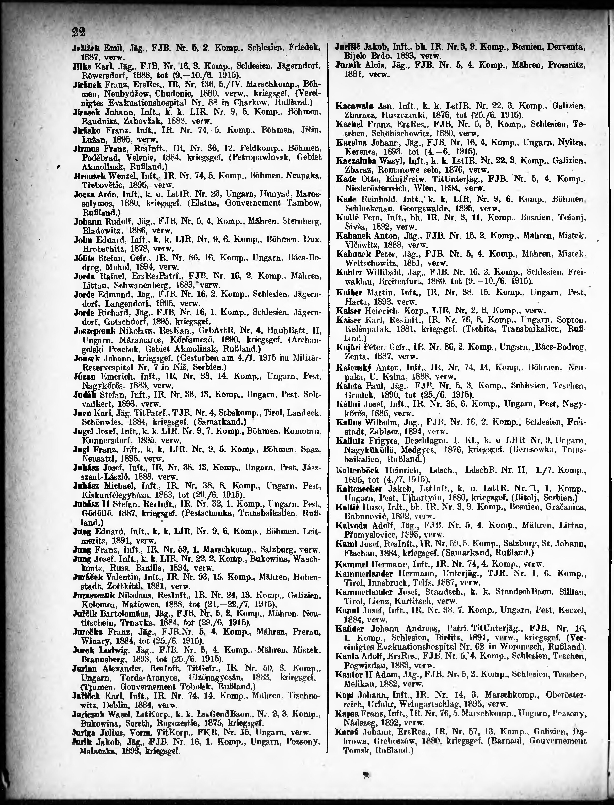 Verlustliste ausgegeben am
