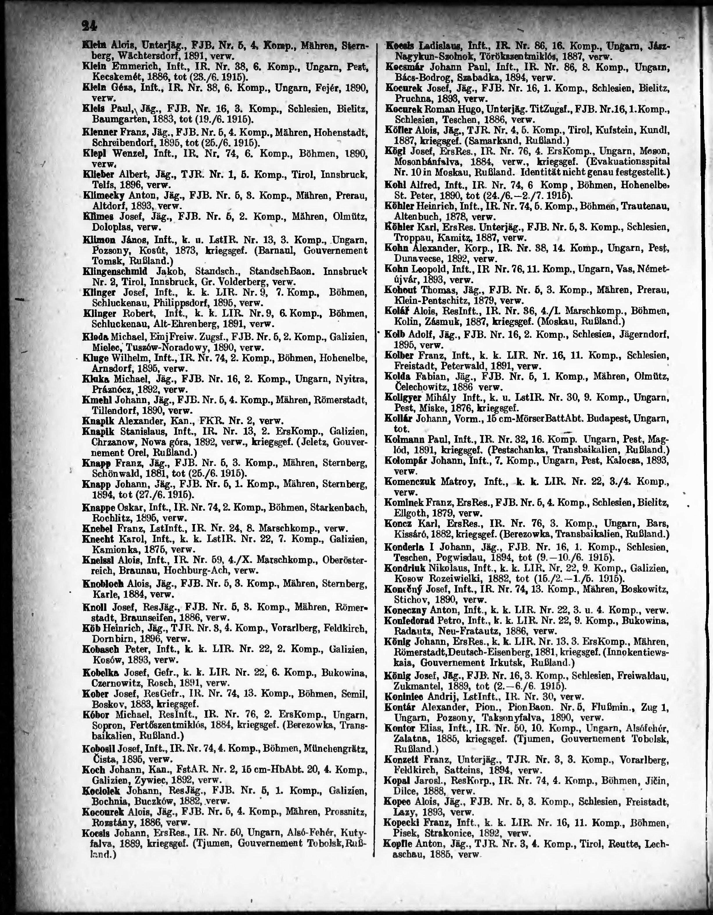 Verlustliste ausgegeben am