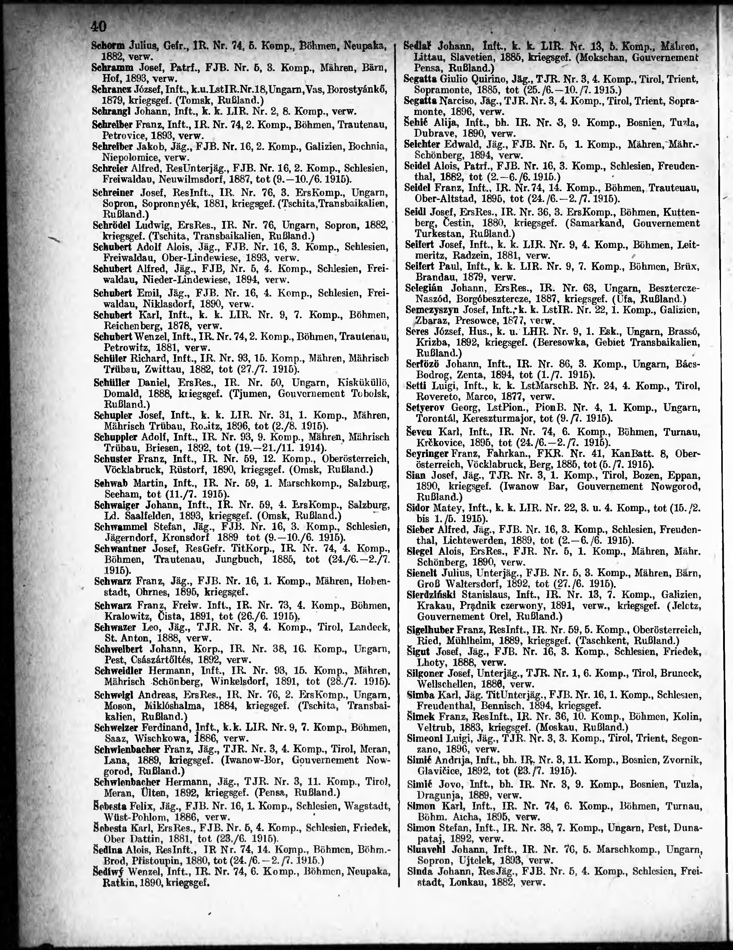 Verlustliste ausgegeben am