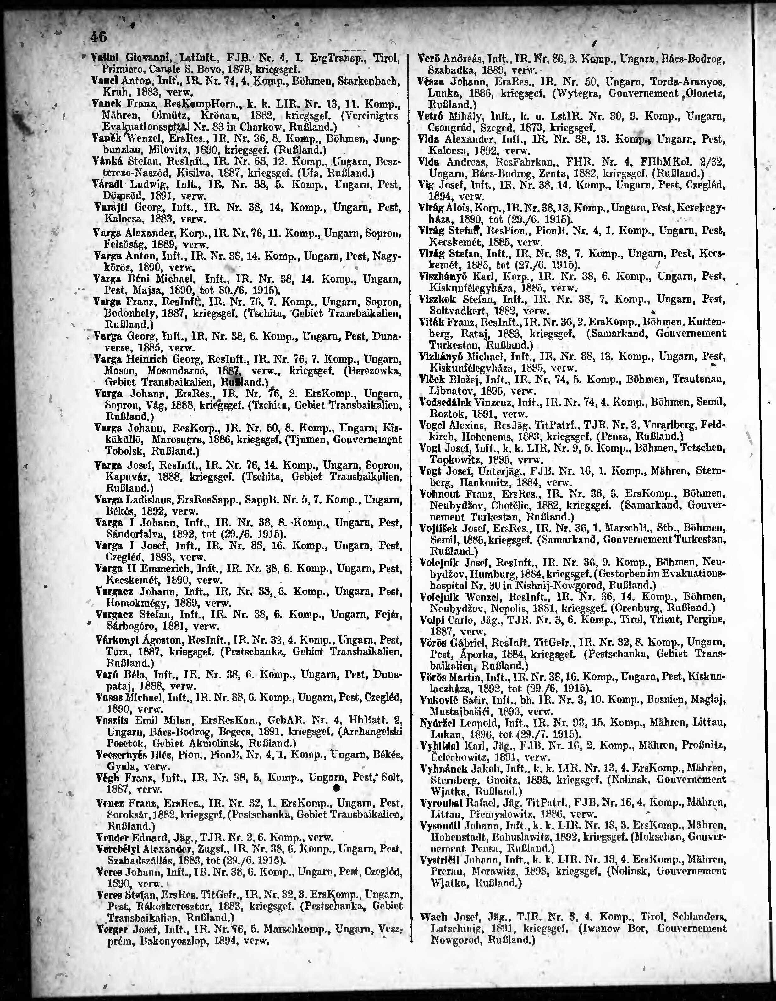 Verlustliste ausgegeben am