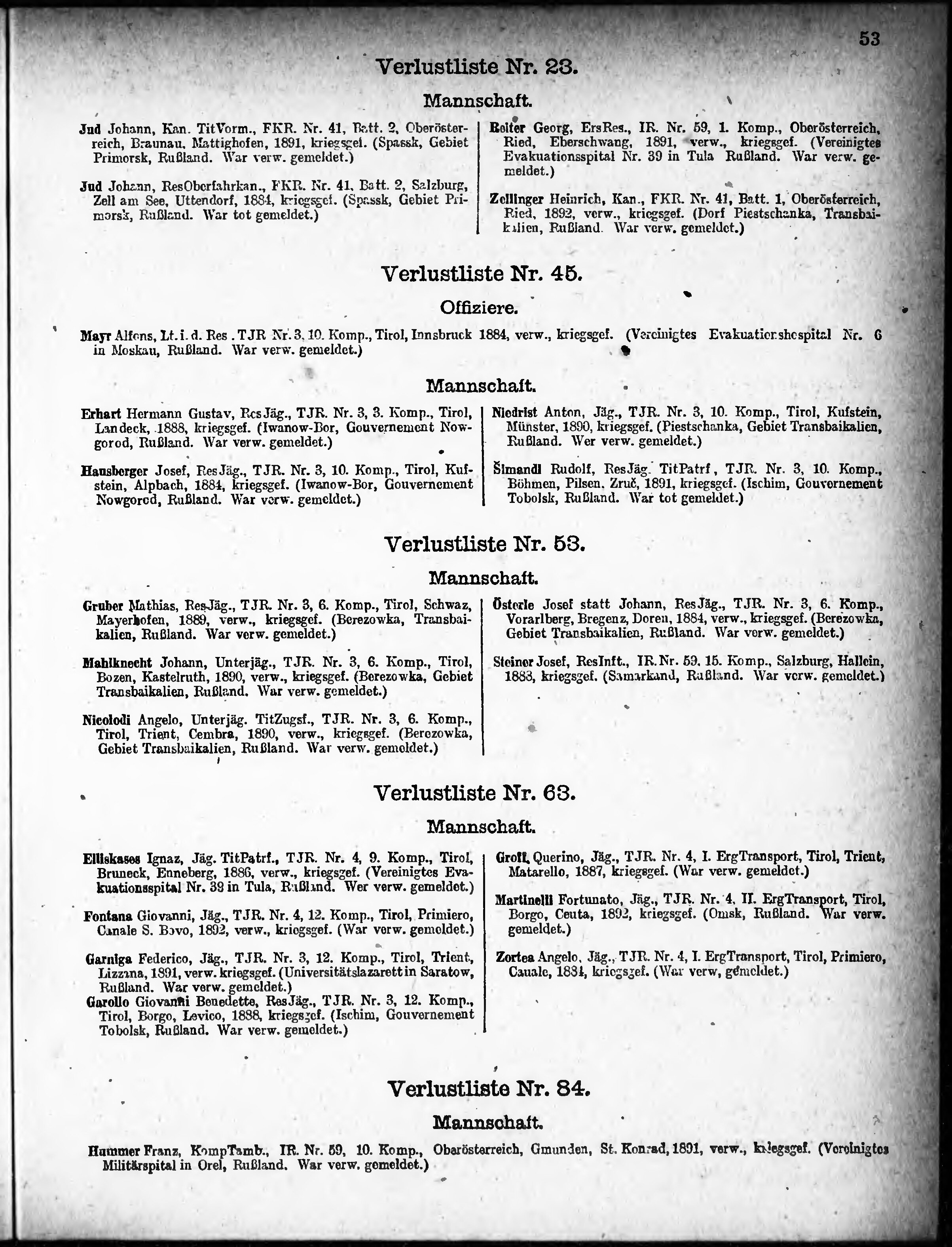 Verlustliste ausgegeben am