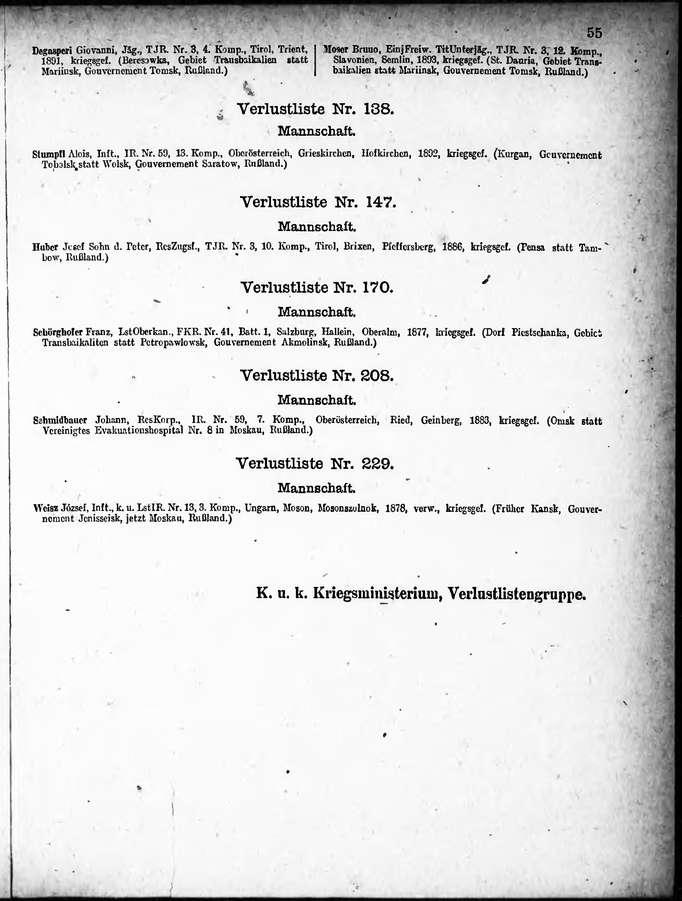 Verlustliste ausgegeben am