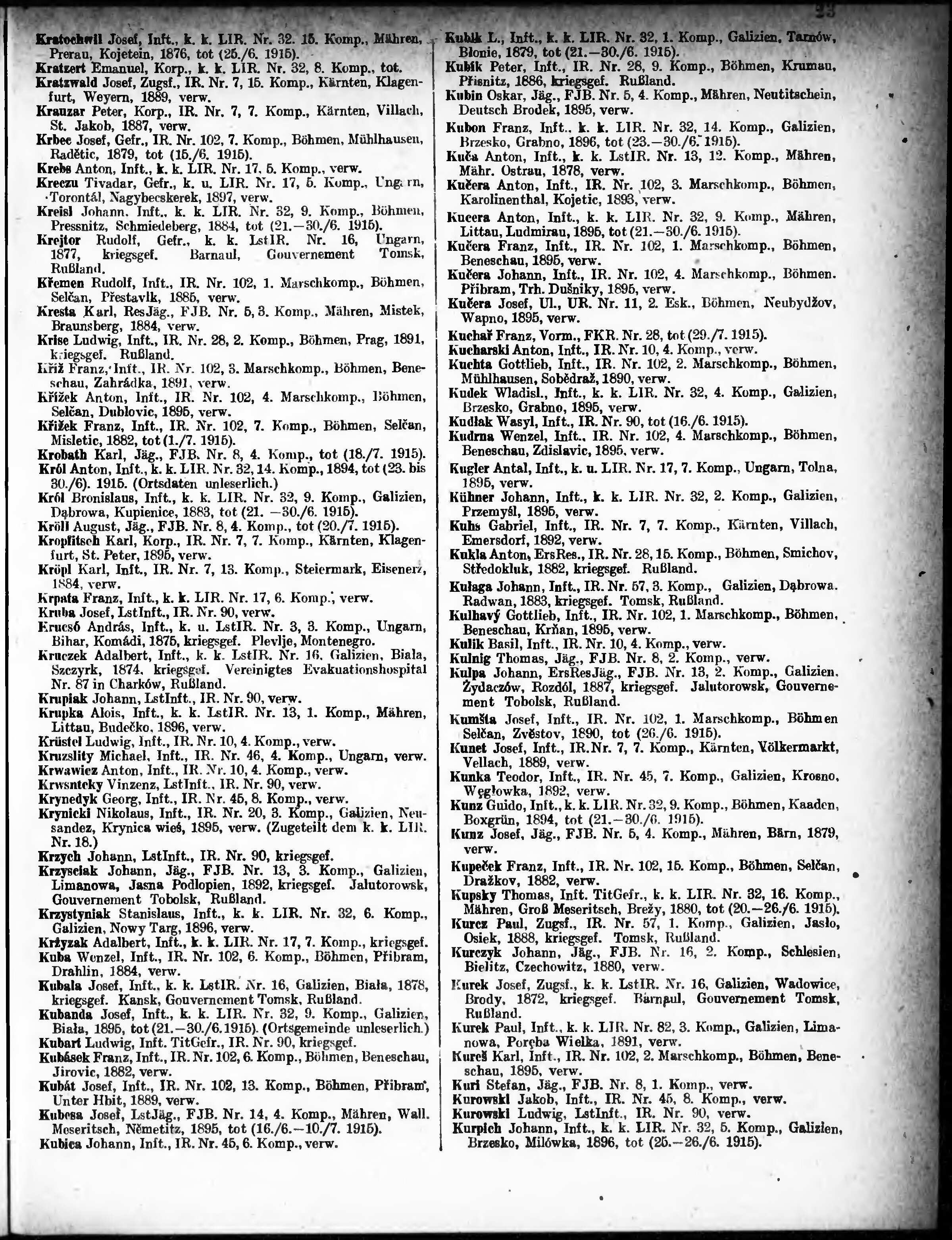 Verlustliste ausgegeben am