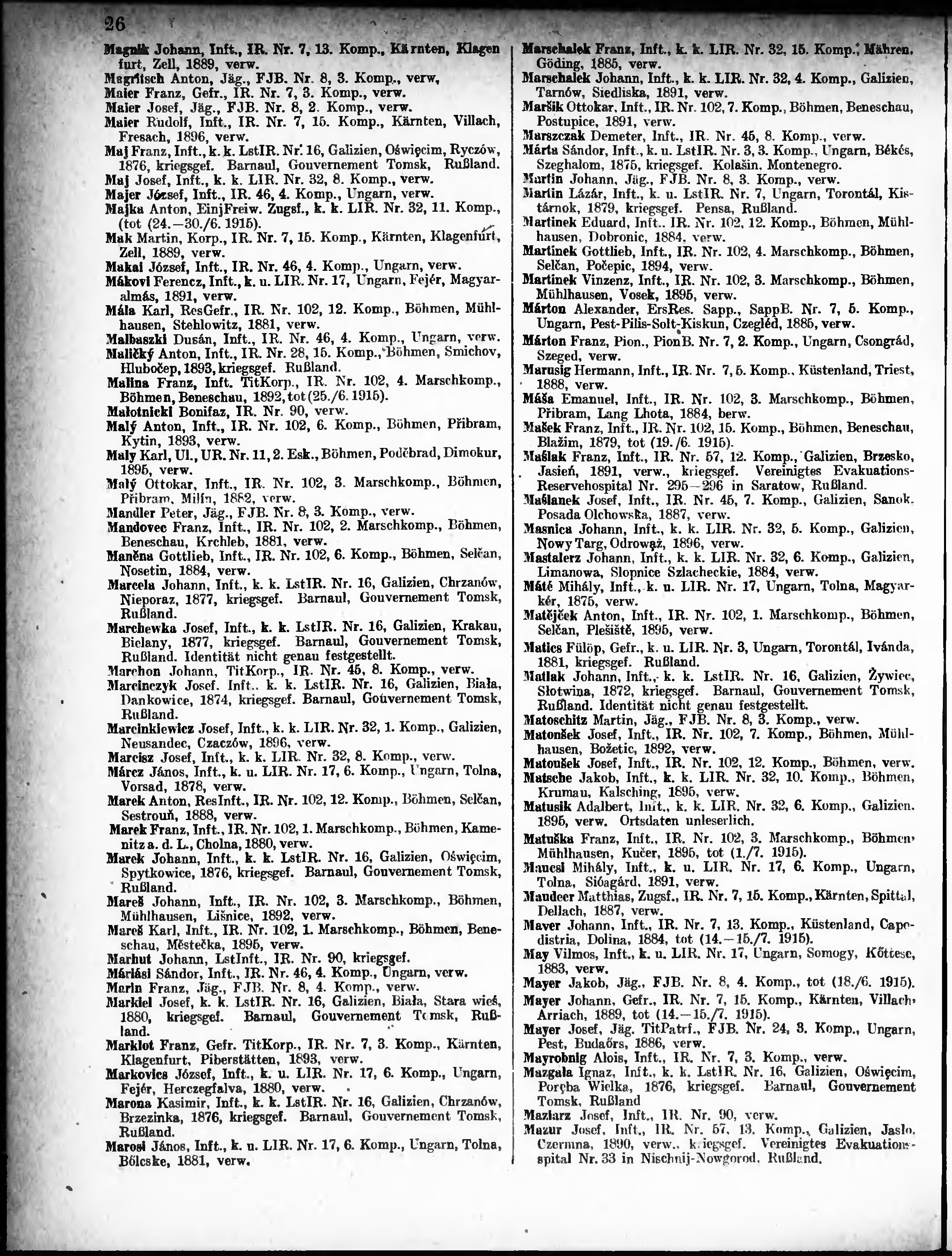 Verlustliste ausgegeben am
