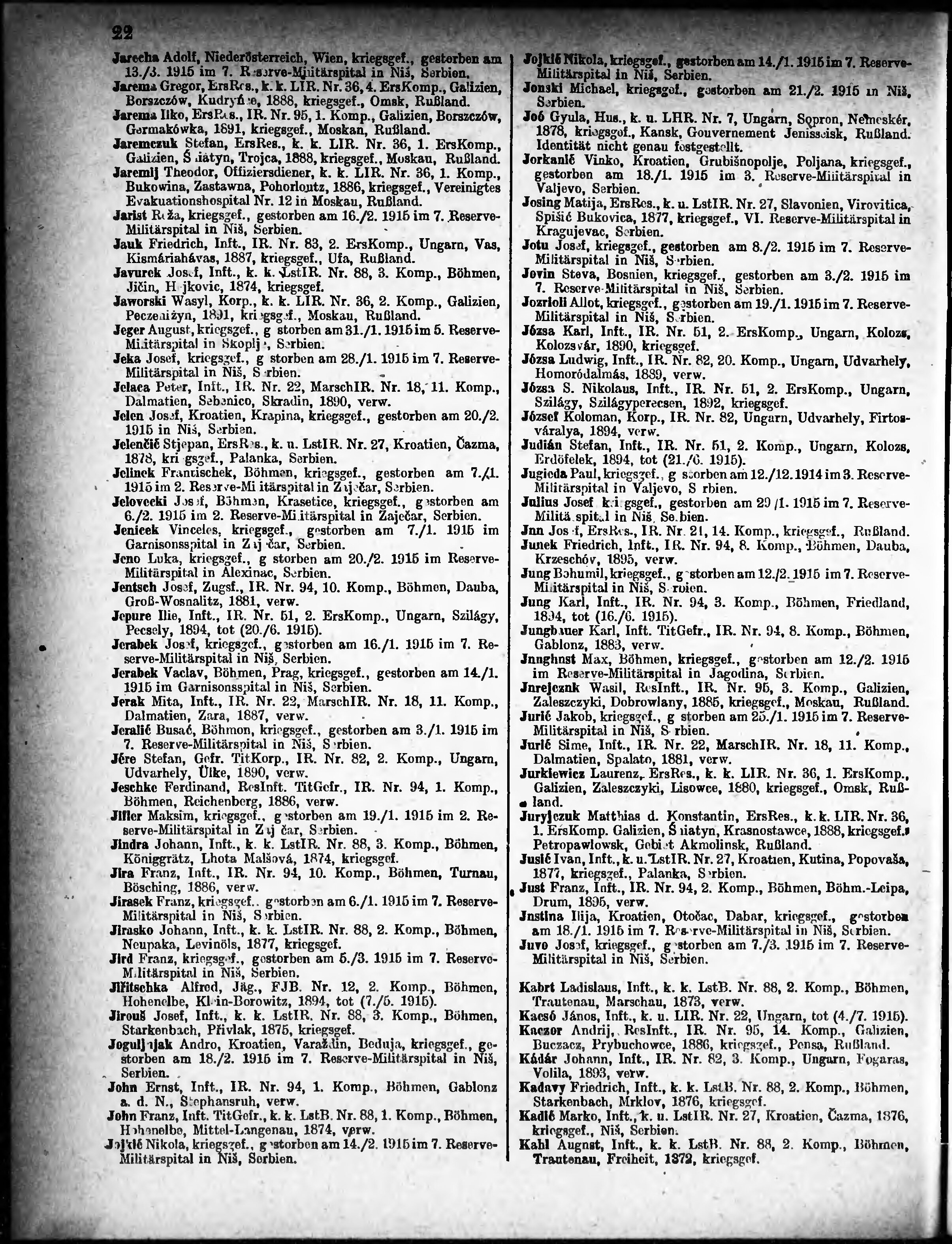 Verlustliste ausgegeben am