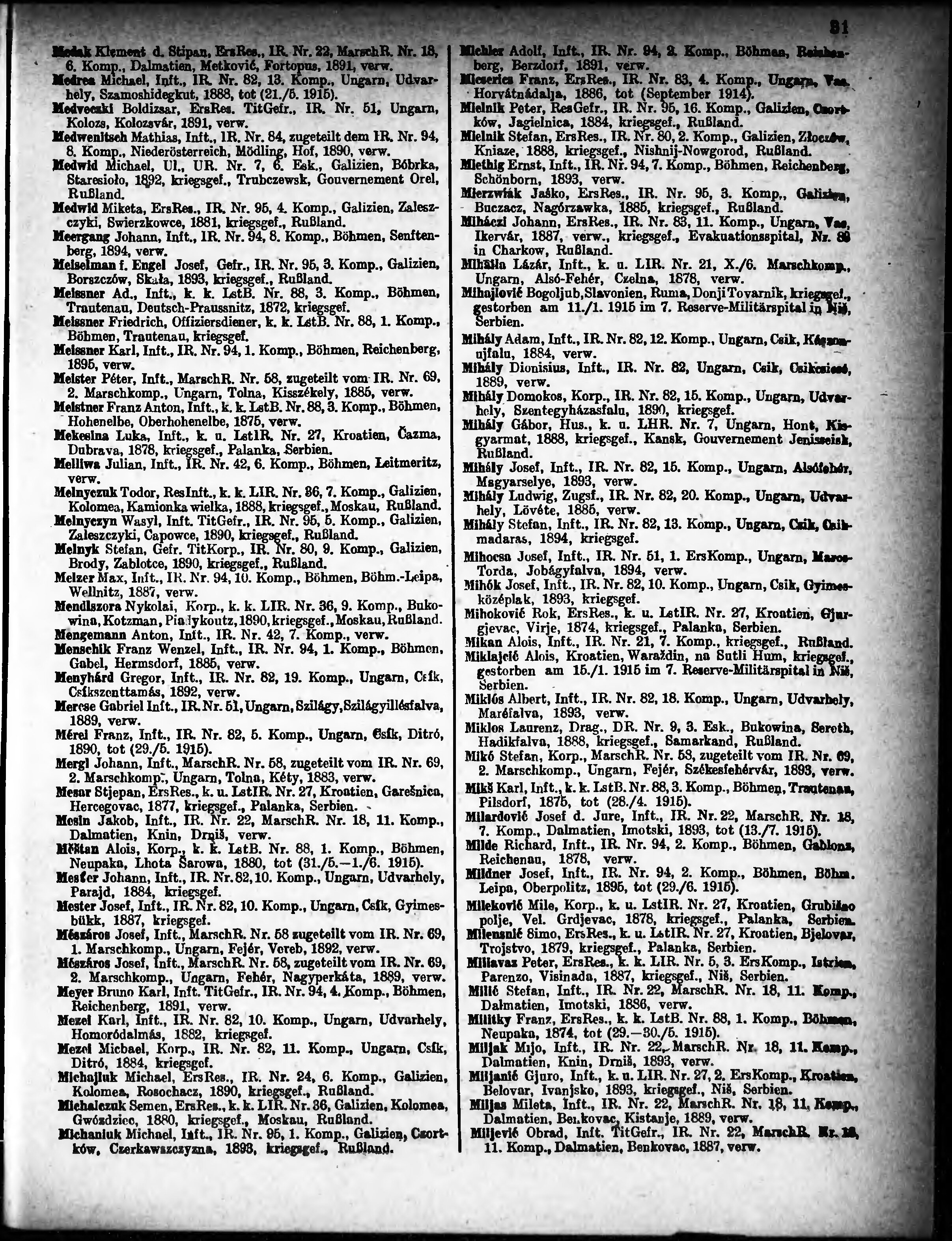 Verlustliste ausgegeben am