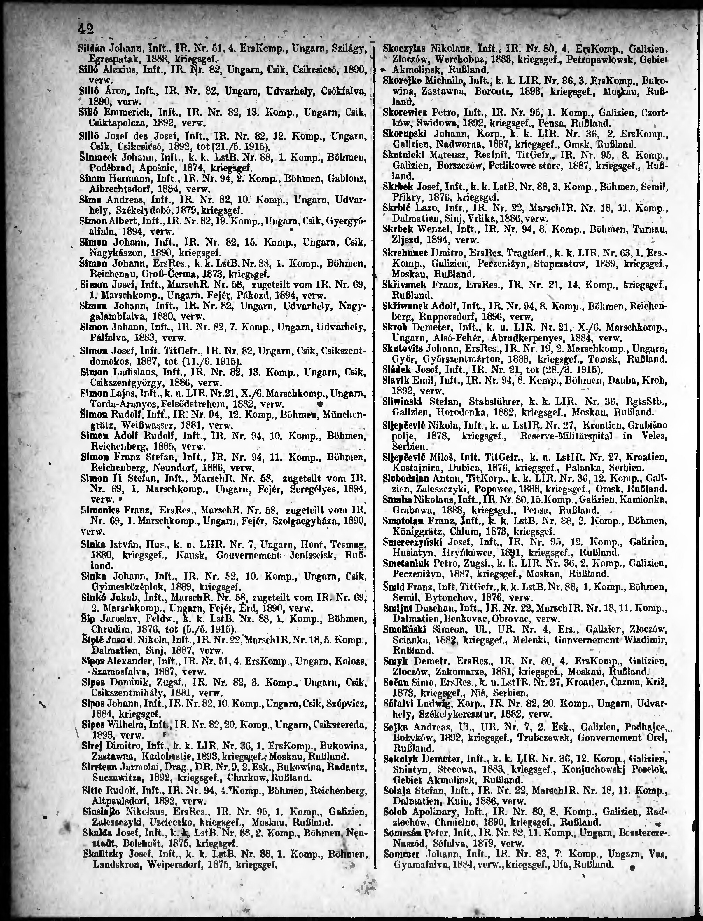 Verlustliste ausgegeben am