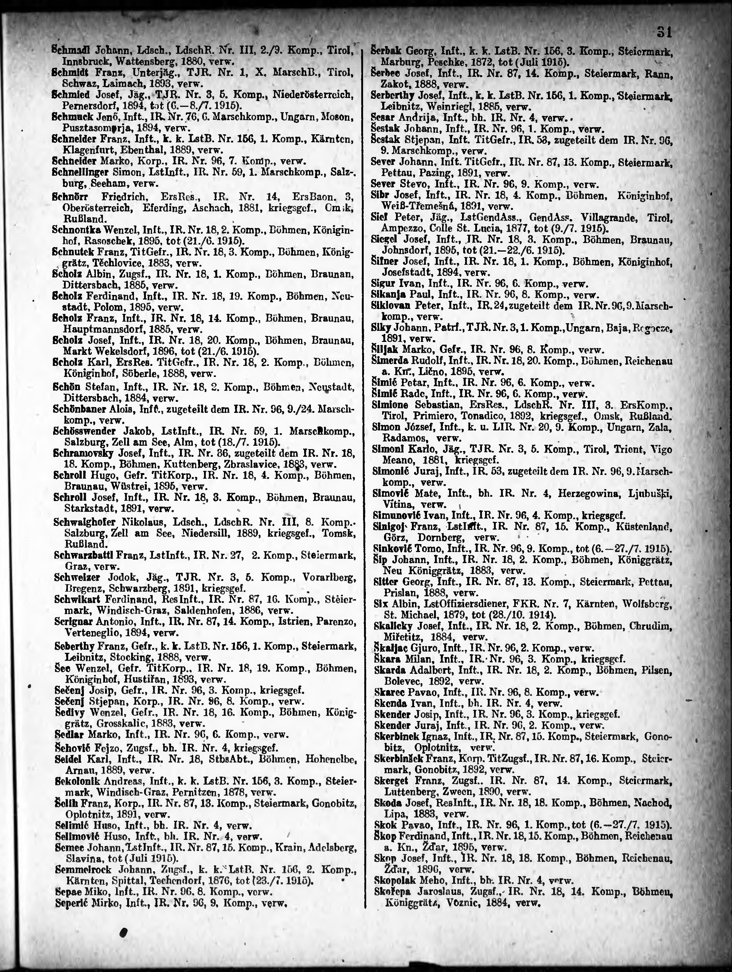 Verlustliste ausgegeben am