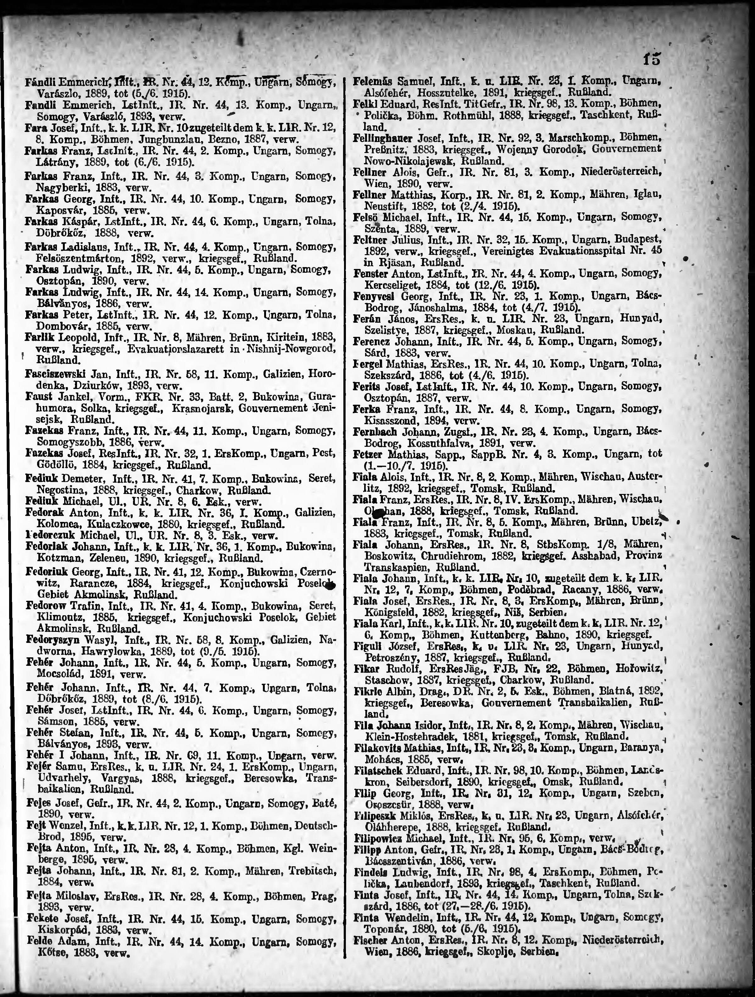 Verlustliste ausgegeben am
