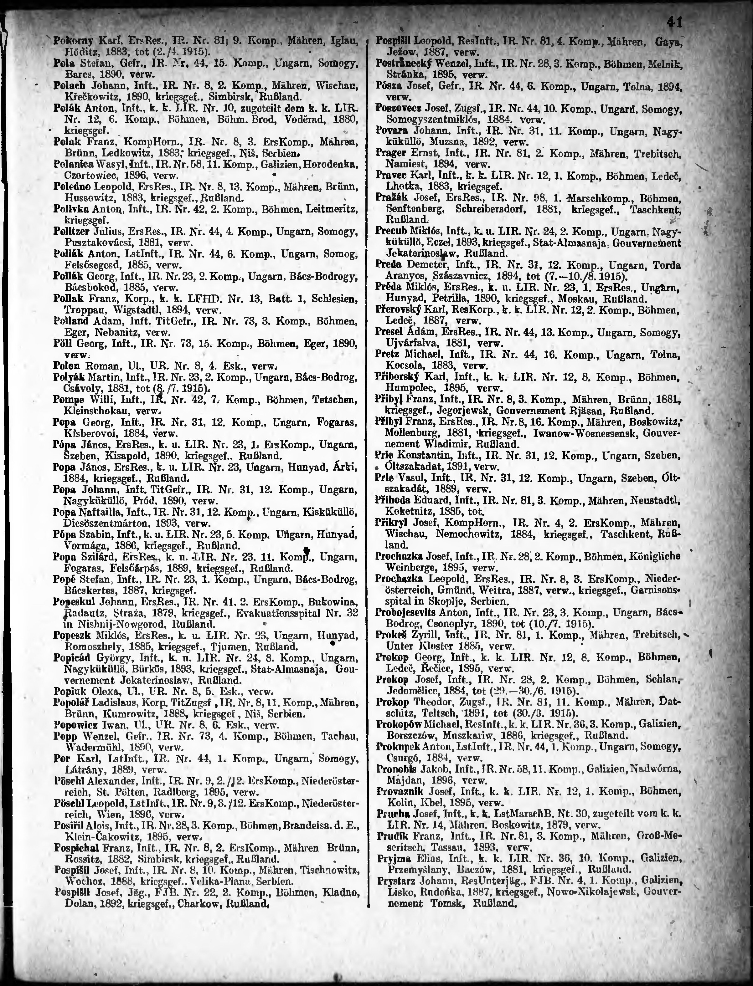 Verlustliste ausgegeben am