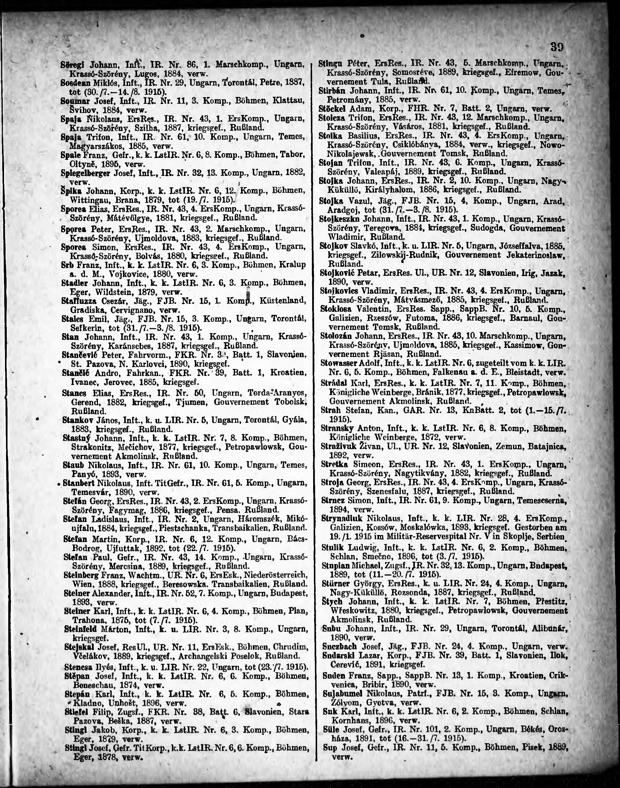 Verlustliste ausgegeben am