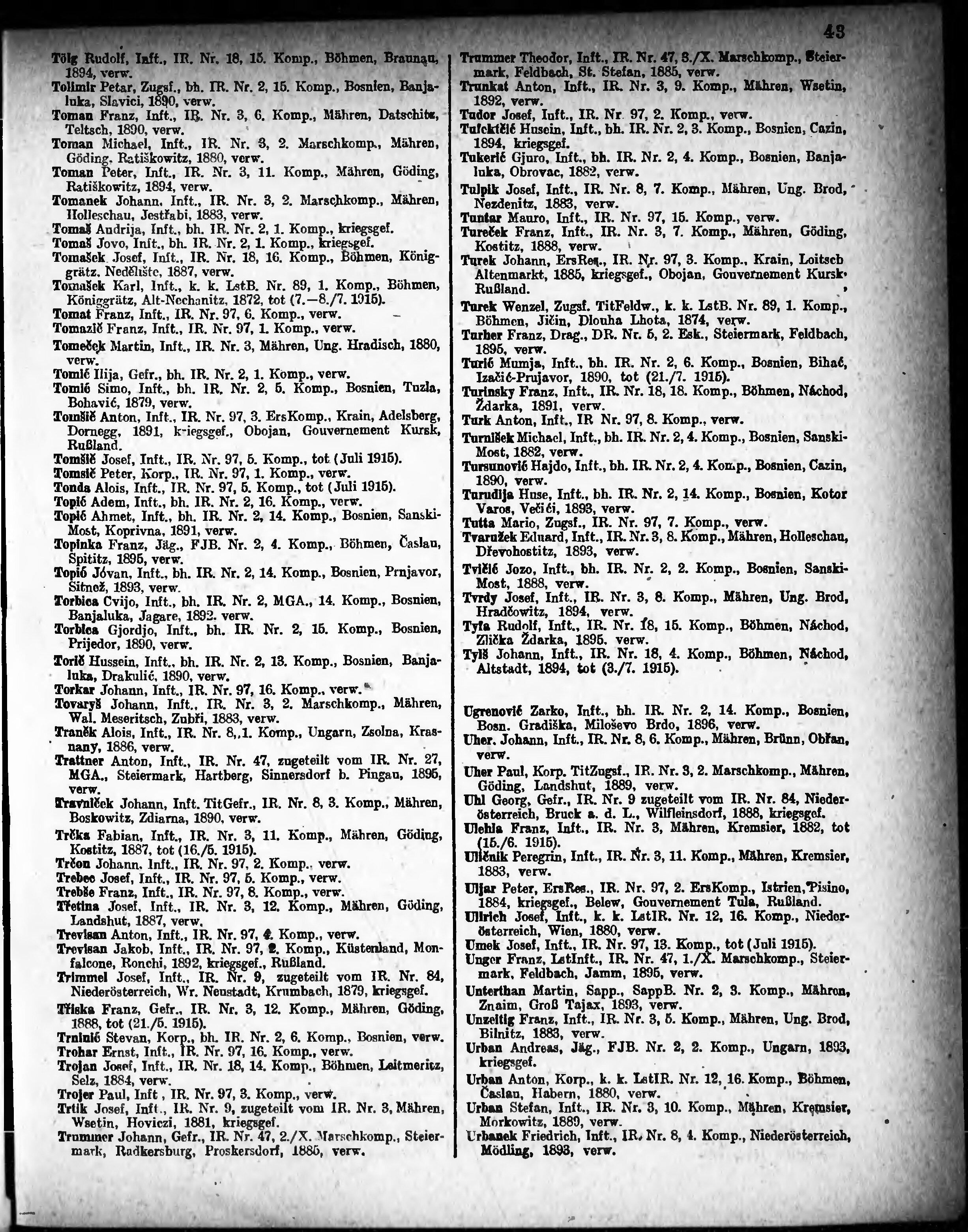 Verlustliste ausgegeben am