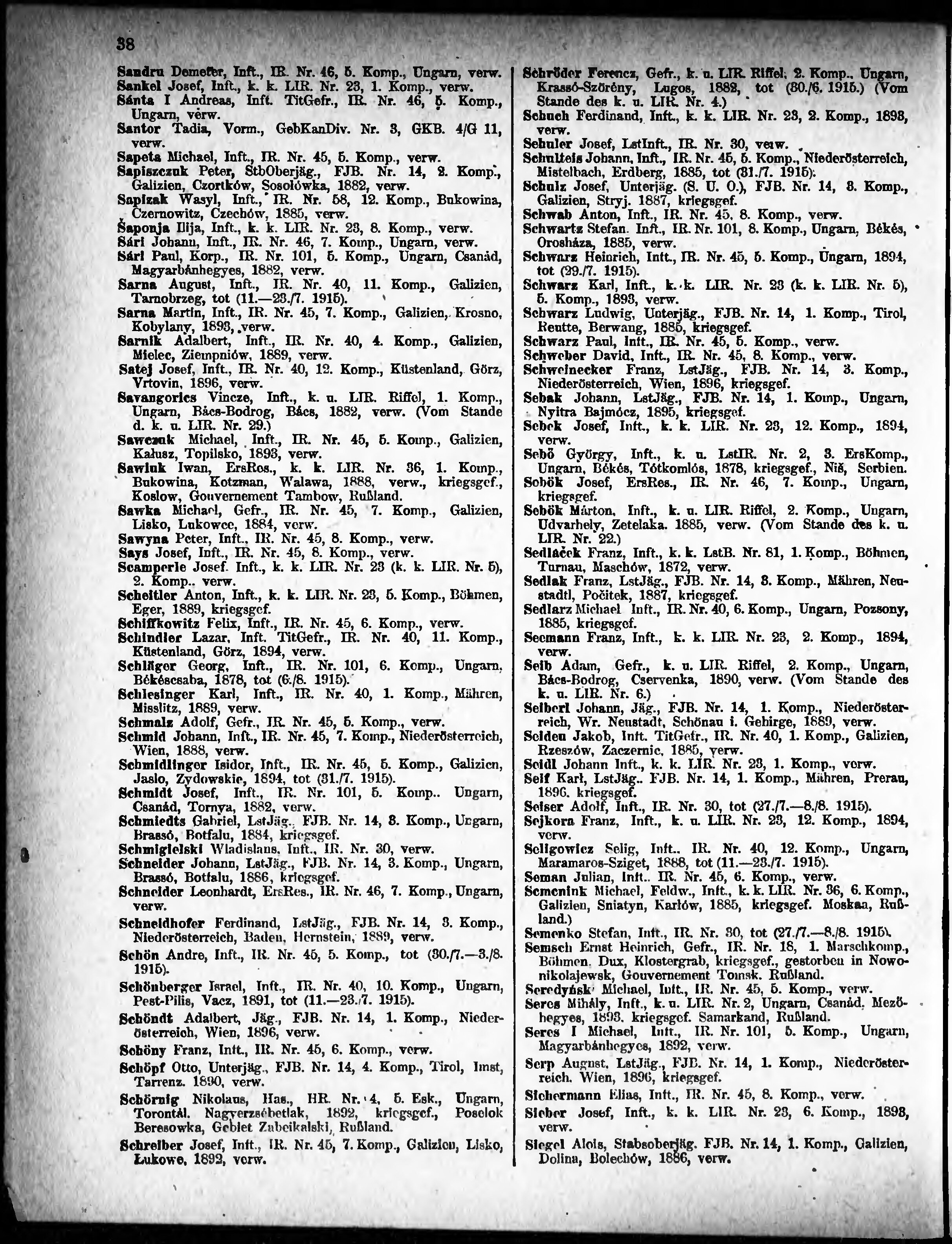 Verlustliste ausgegeben am