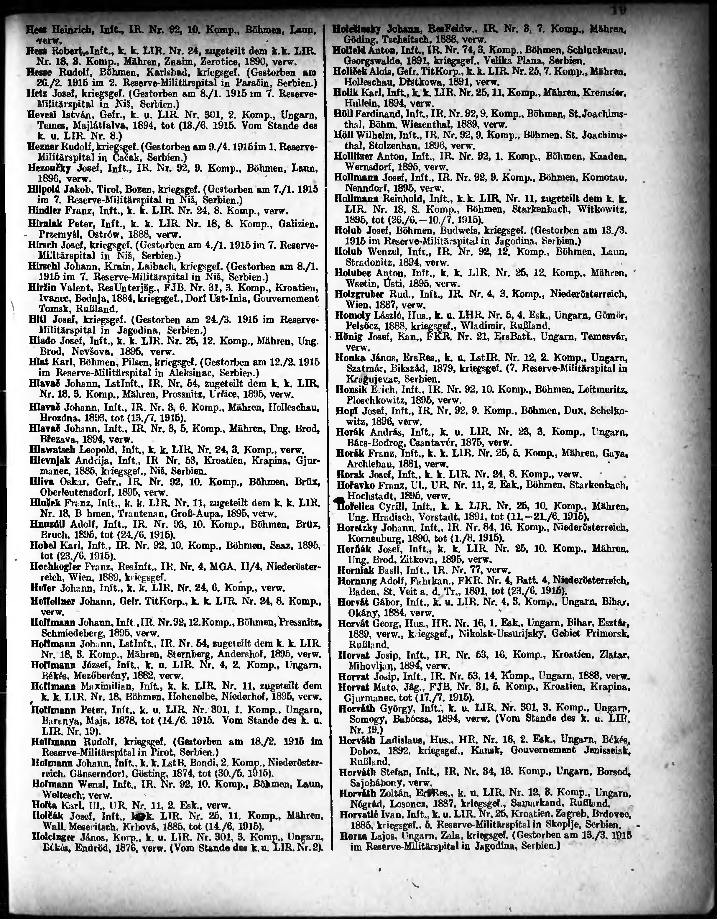 Verlustliste ausgegeben am