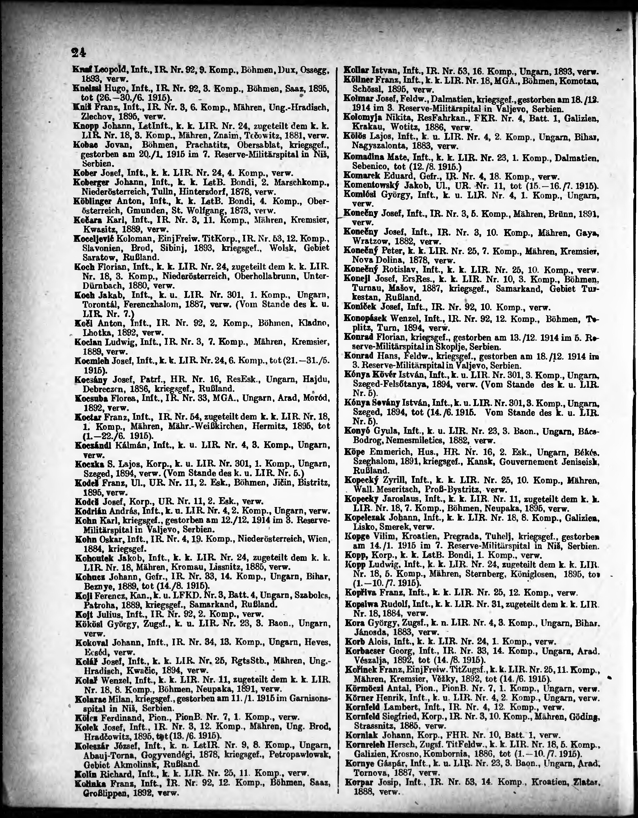 Verlustliste ausgegeben am