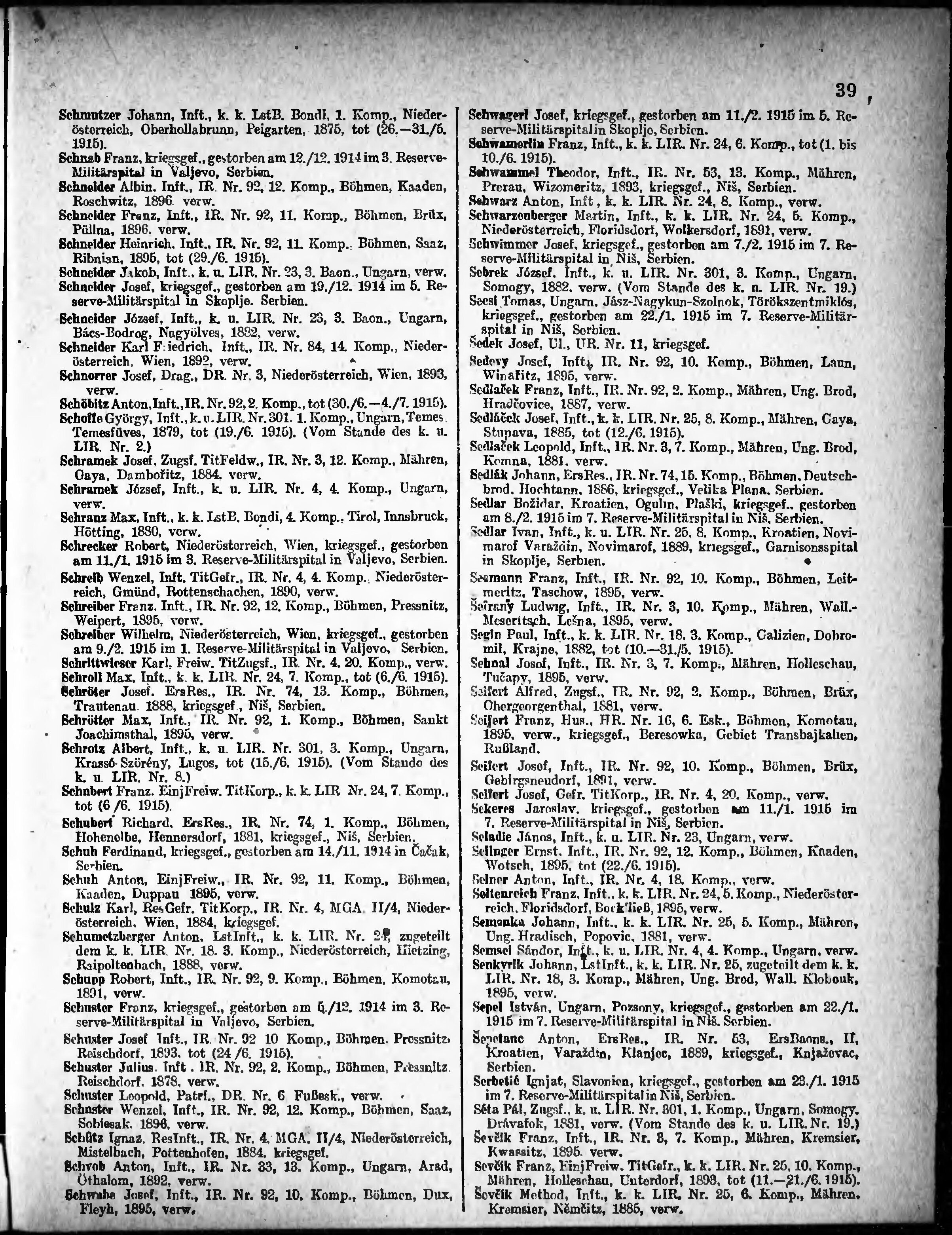 Verlustliste ausgegeben am