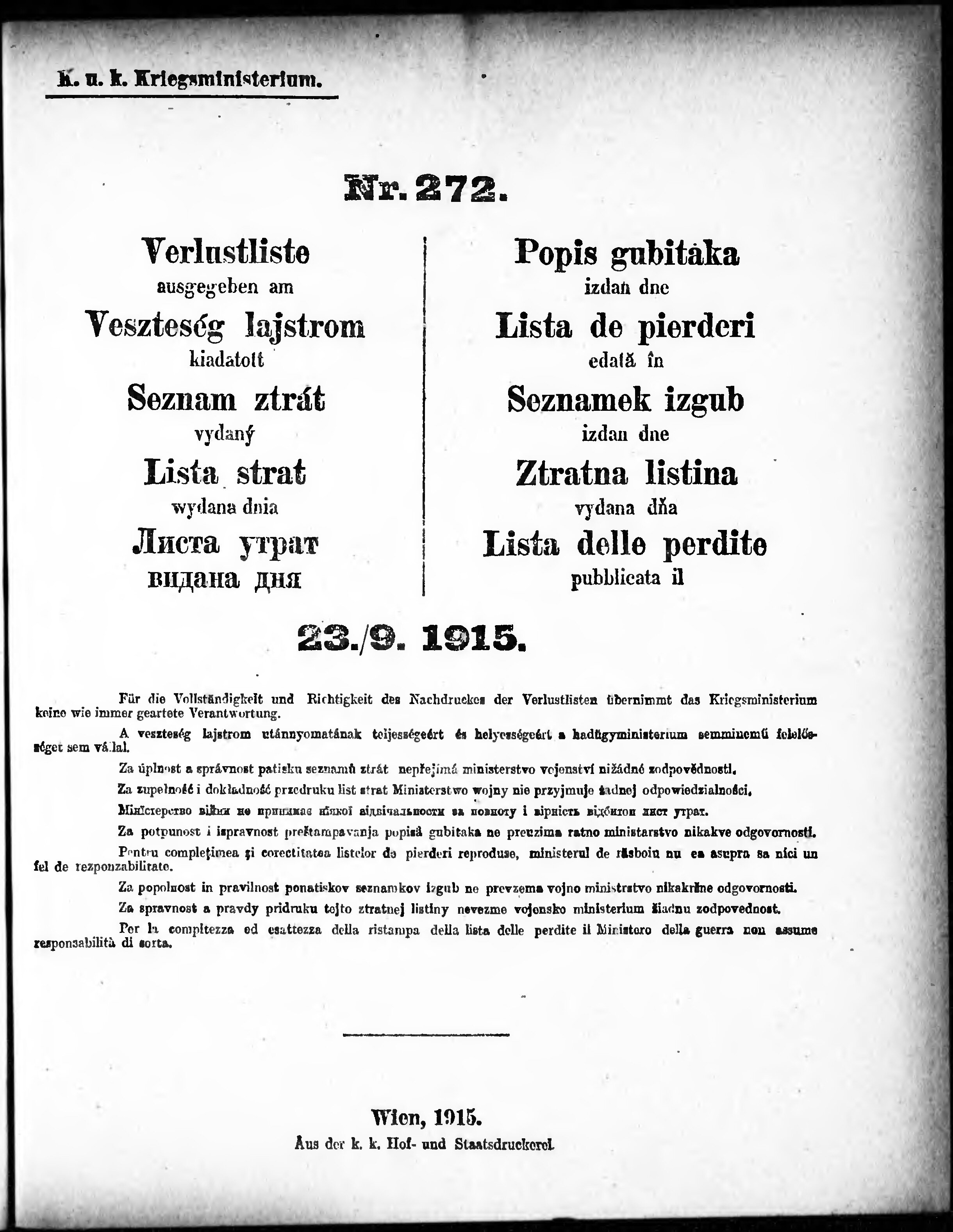 Verlustliste ausgegeben am