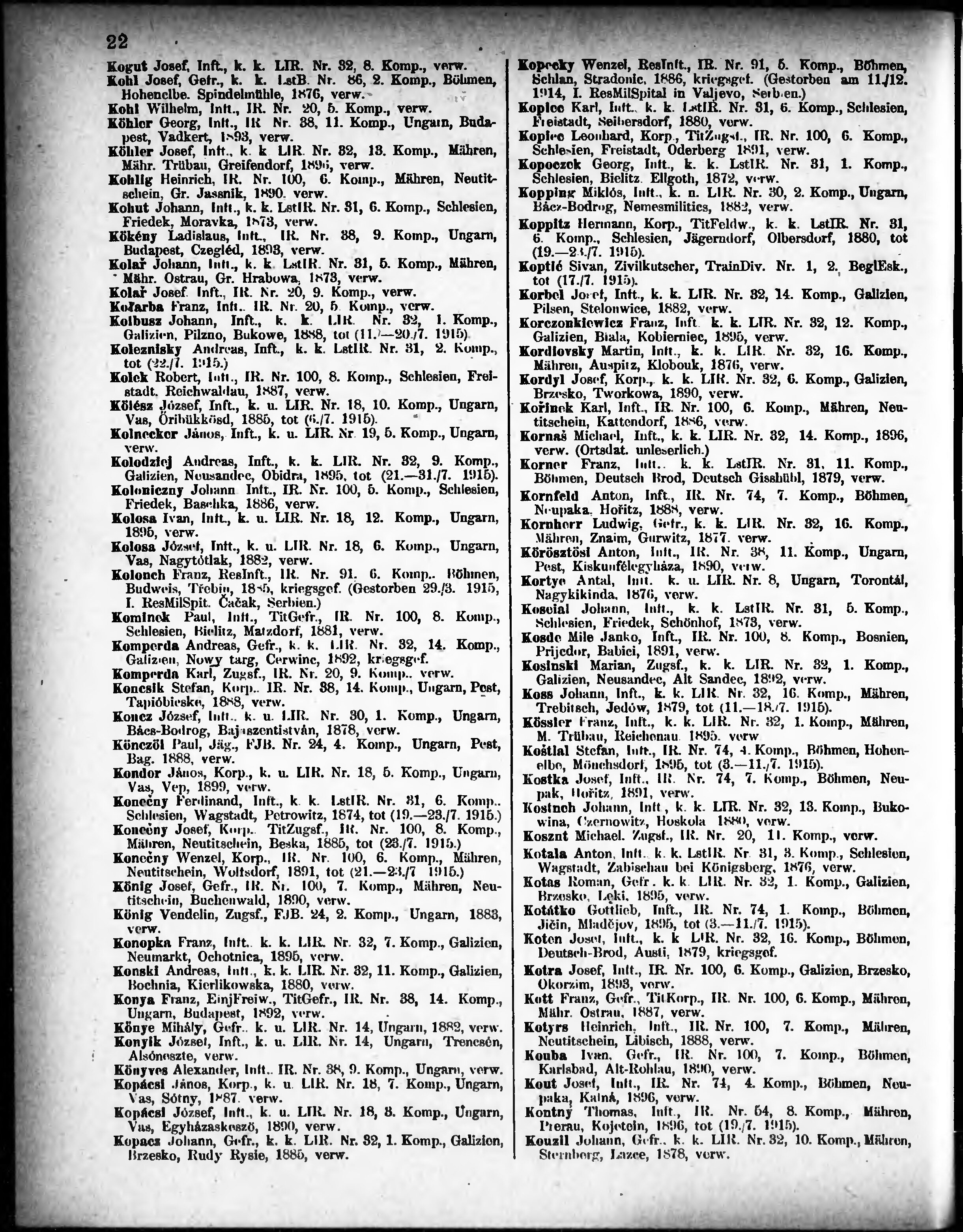 Verlustliste ausgegeben am