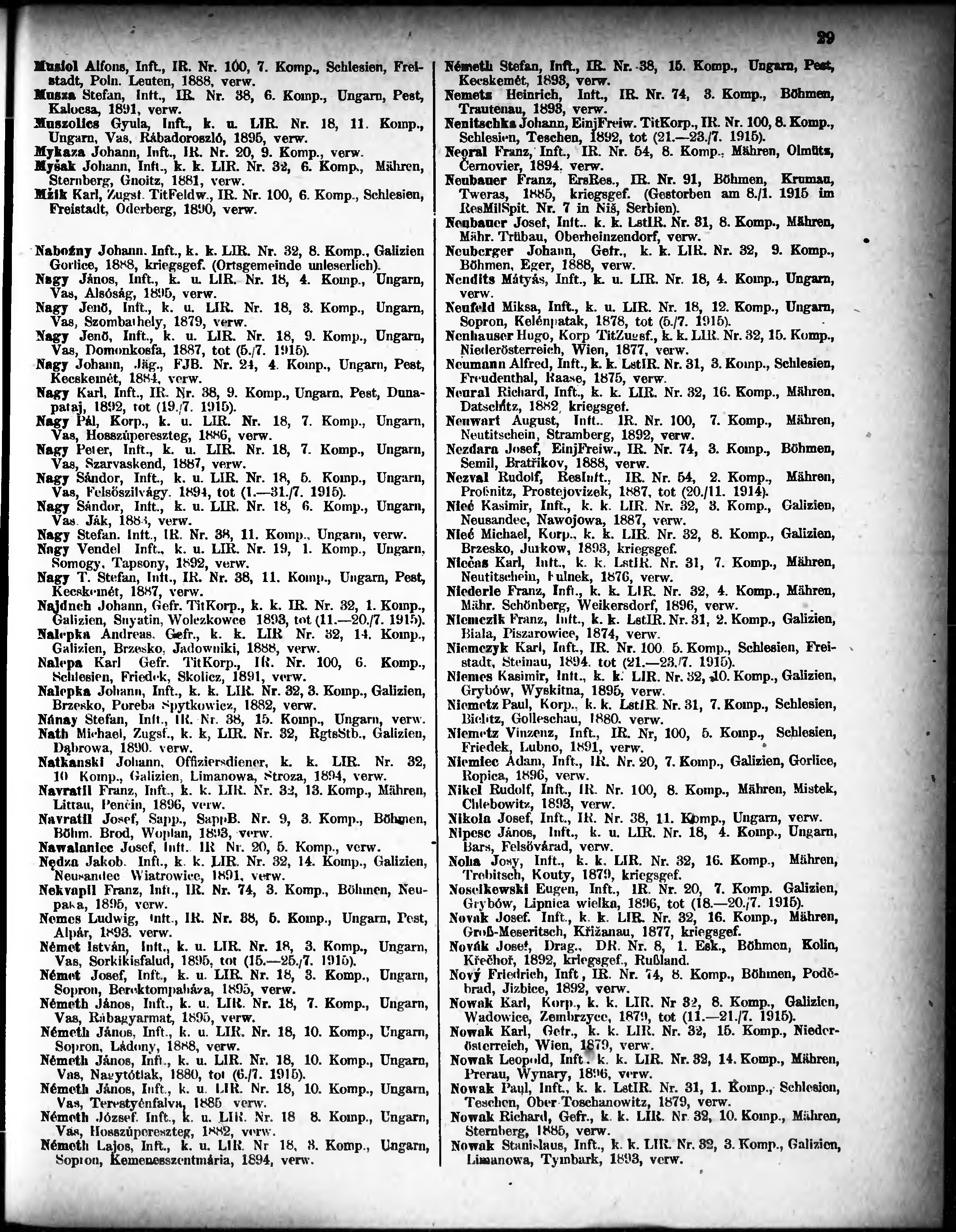 Verlustliste ausgegeben am