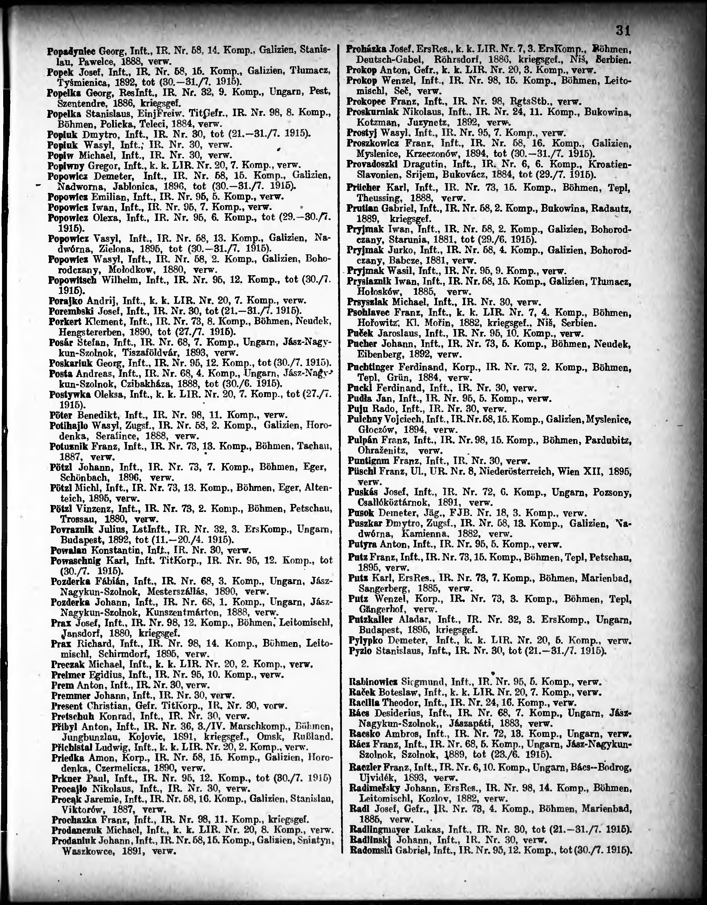 Verlustliste ausgegeben am