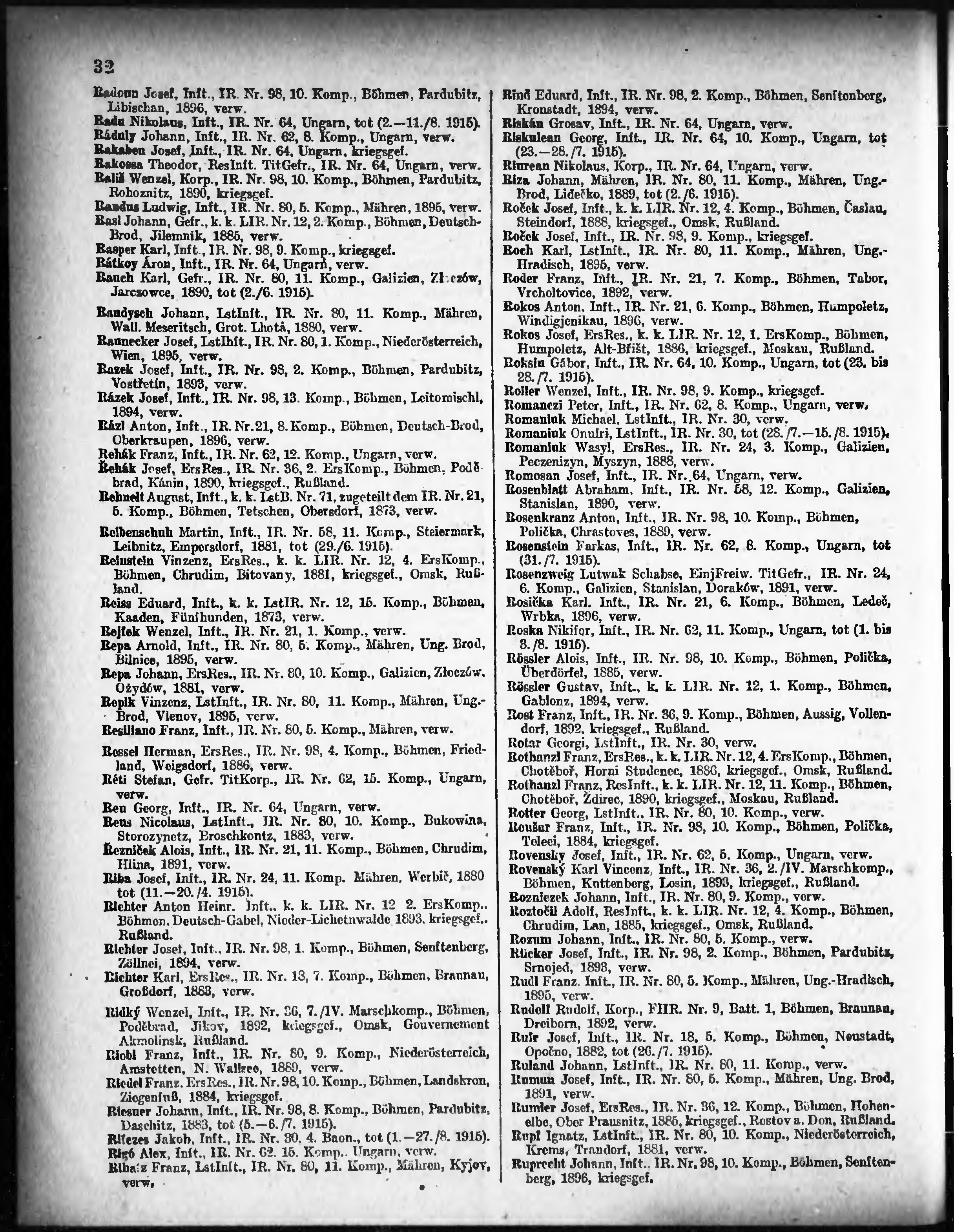 Verlustliste ausgegeben am