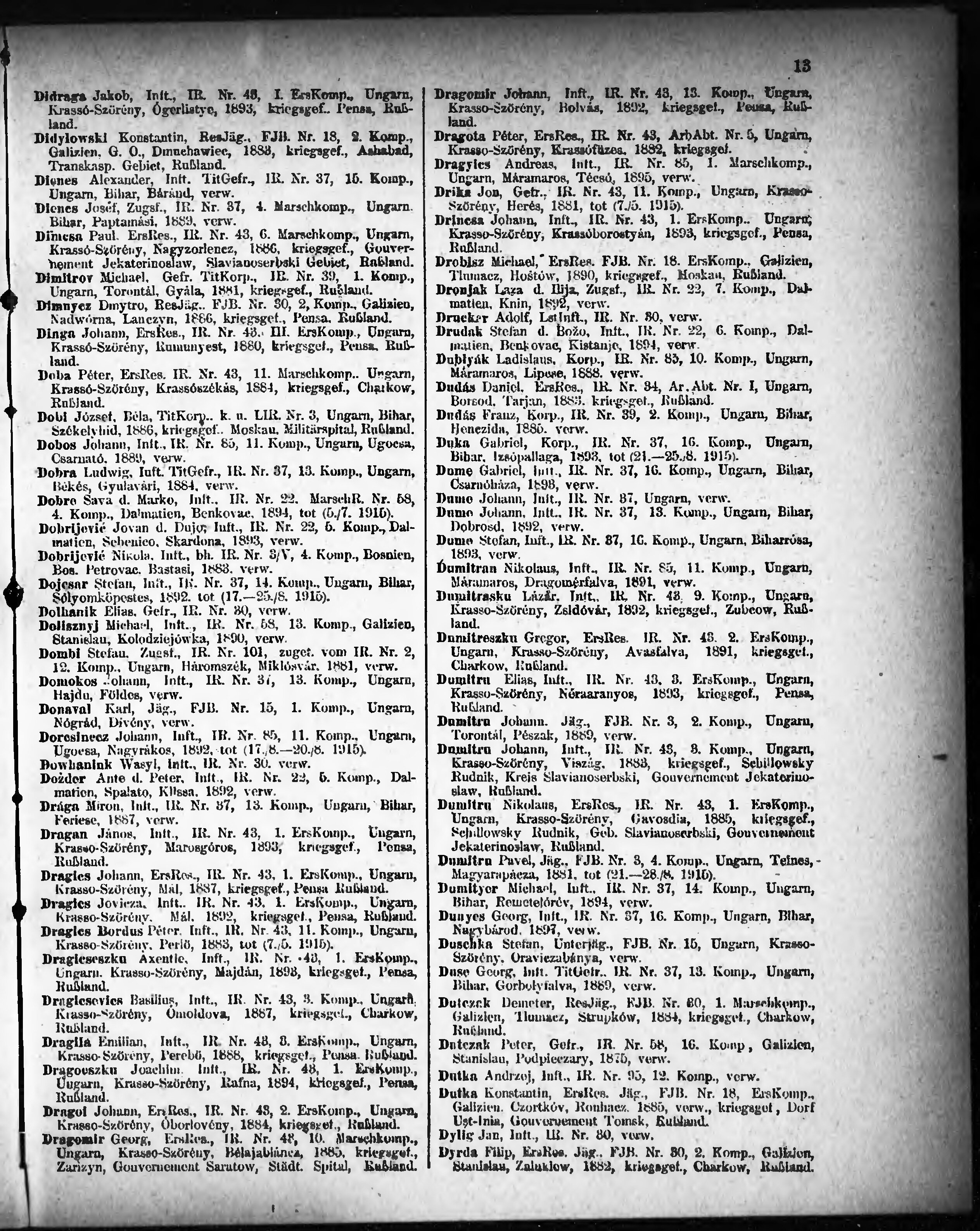 Verlustliste ausgegeben am