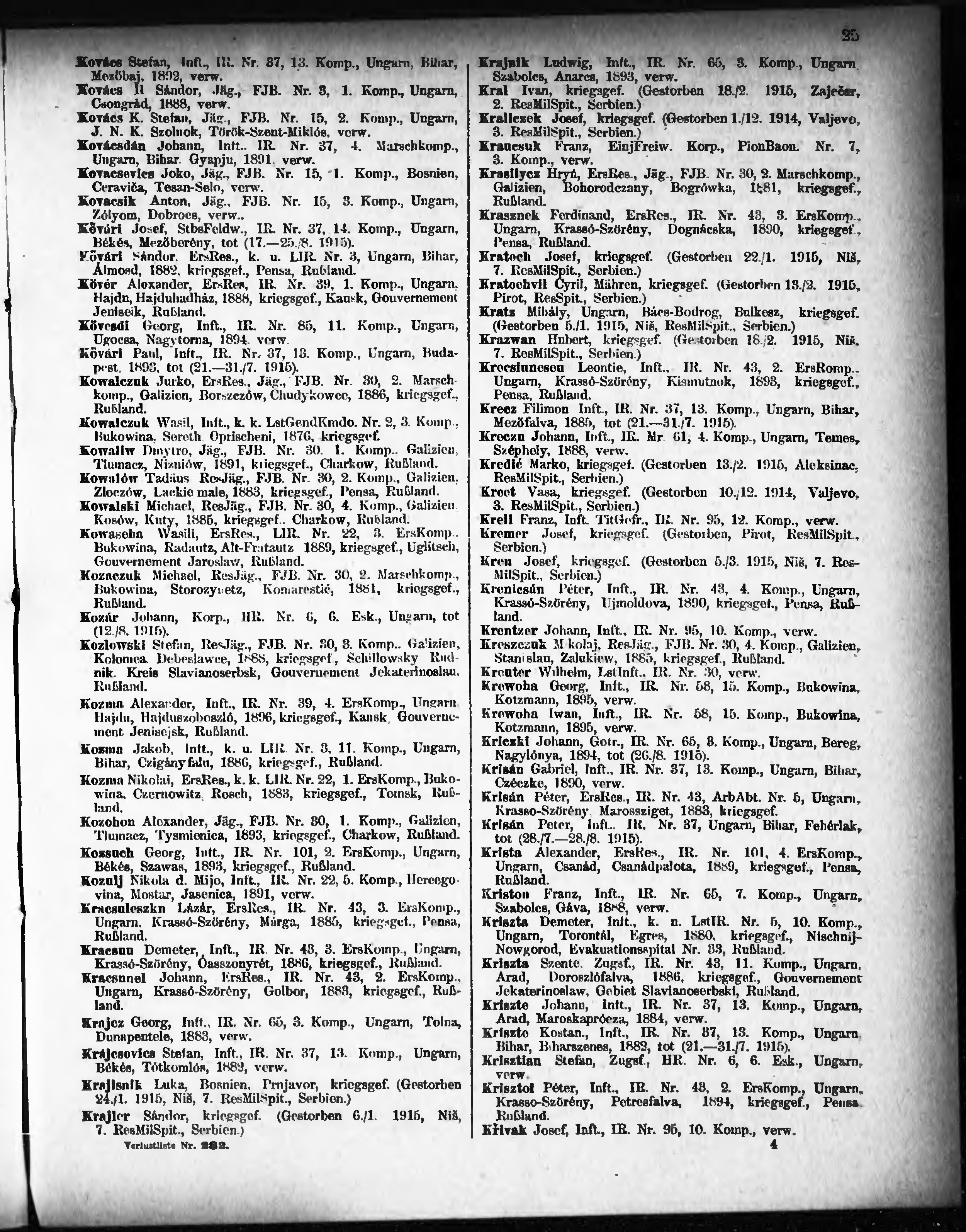 Verlustliste ausgegeben am