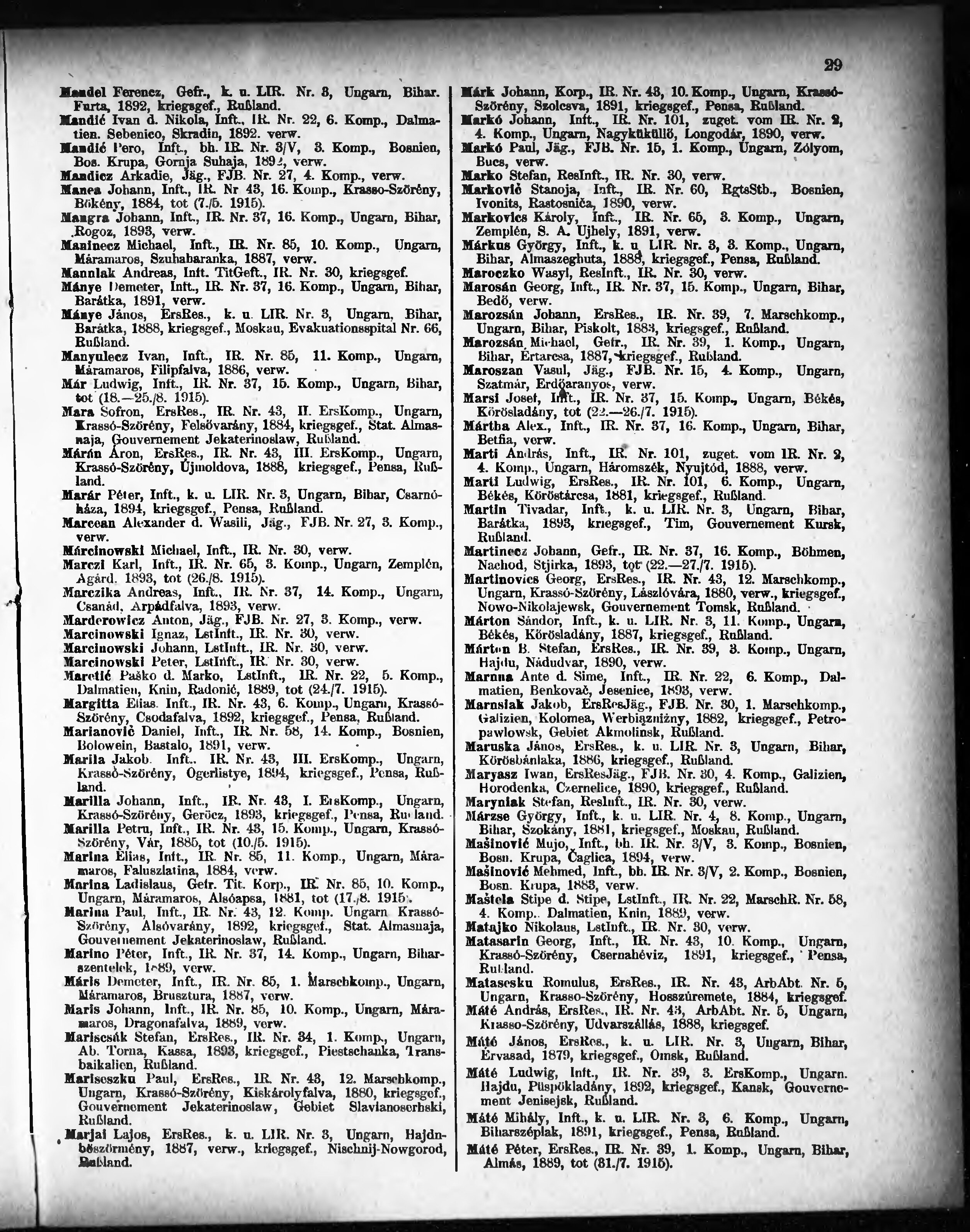 Verlustliste ausgegeben am