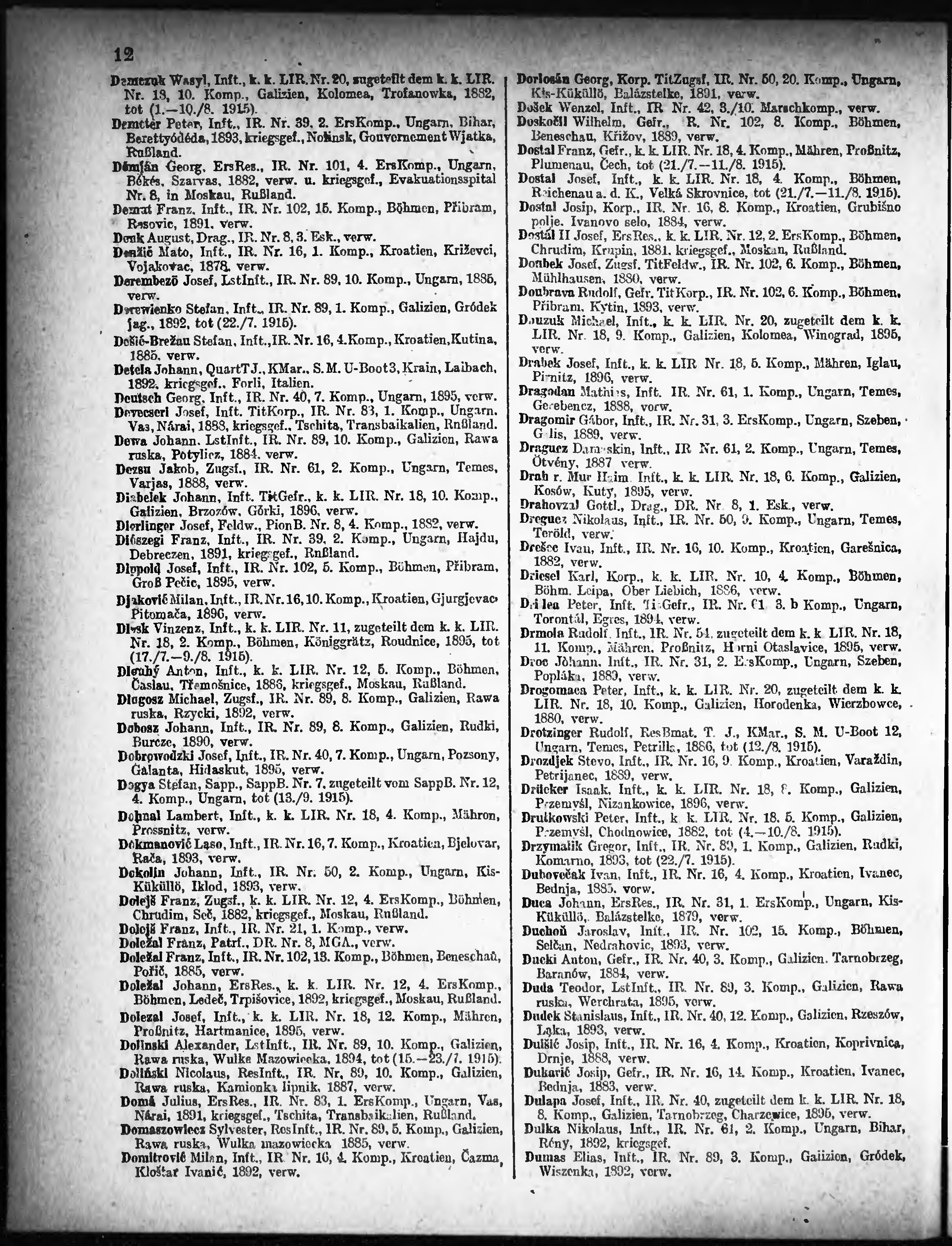 Verlustliste ausgegeben am