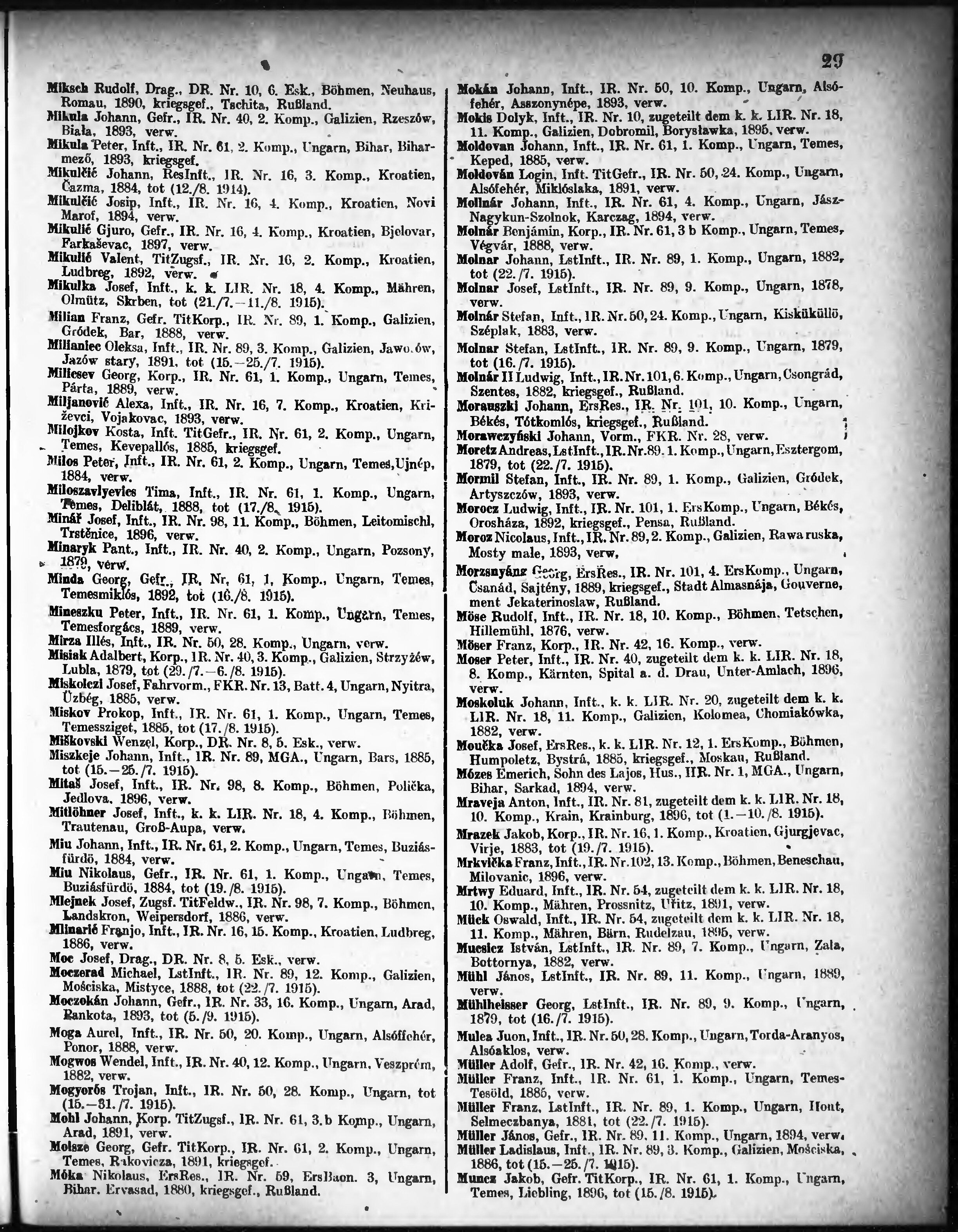 Verlustliste ausgegeben am