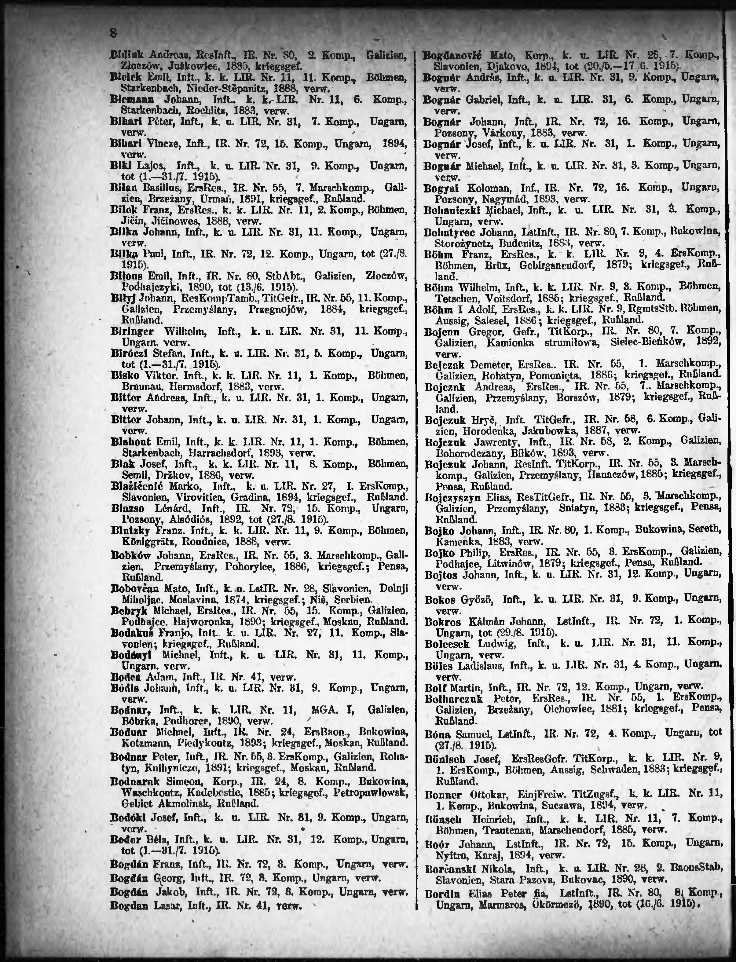 Verlustliste ausgegeben am
