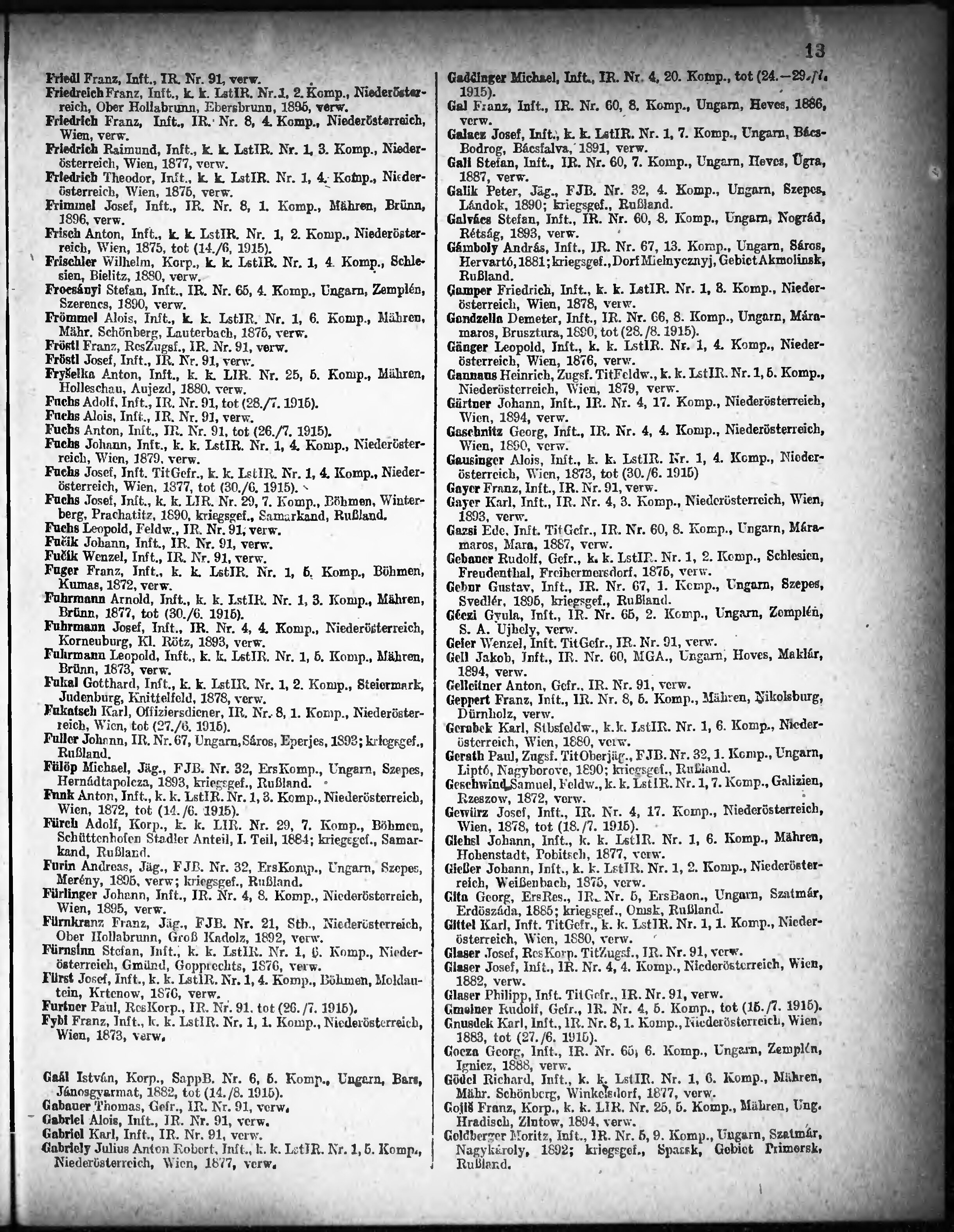 Verlustliste ausgegeben am