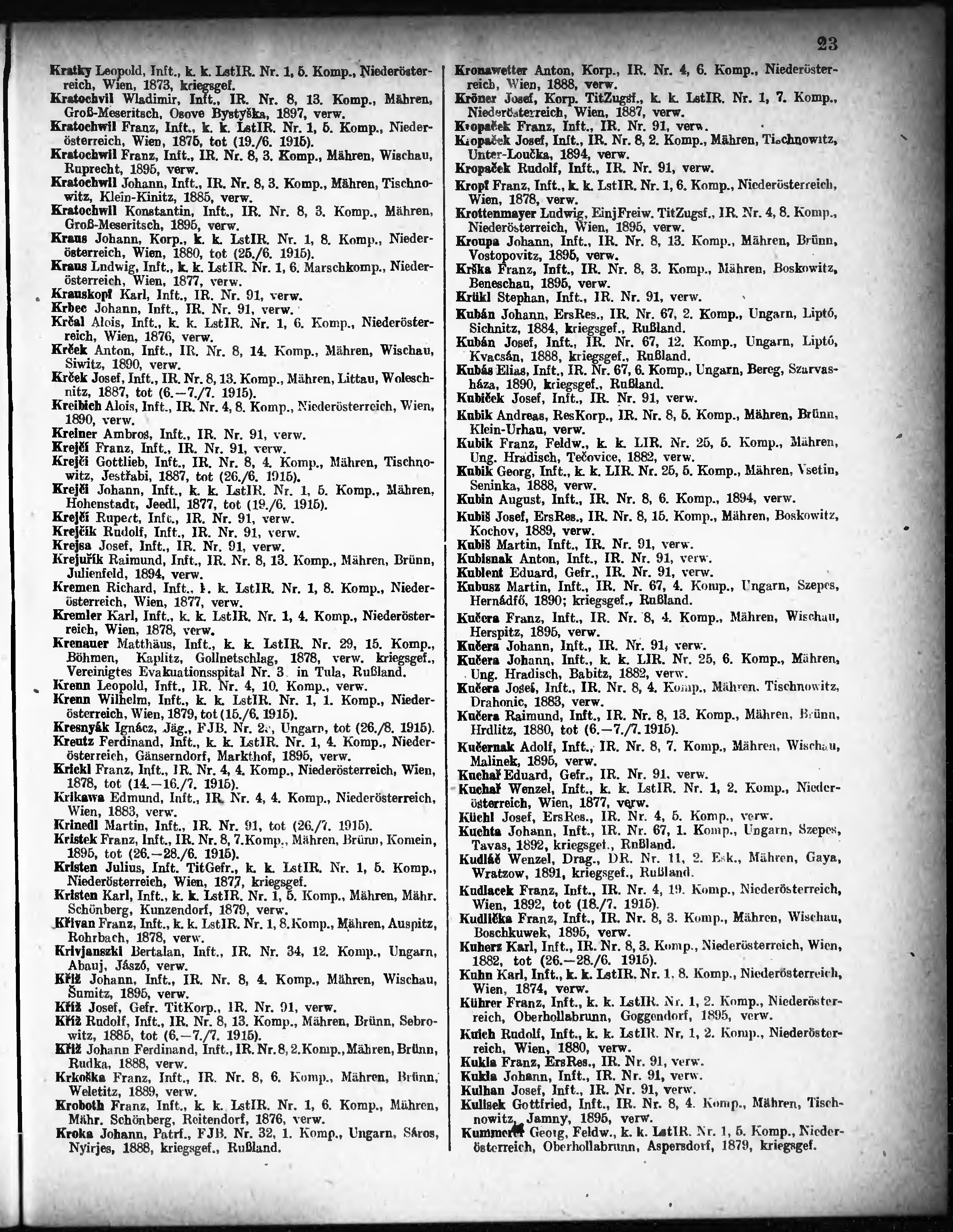 Verlustliste ausgegeben am