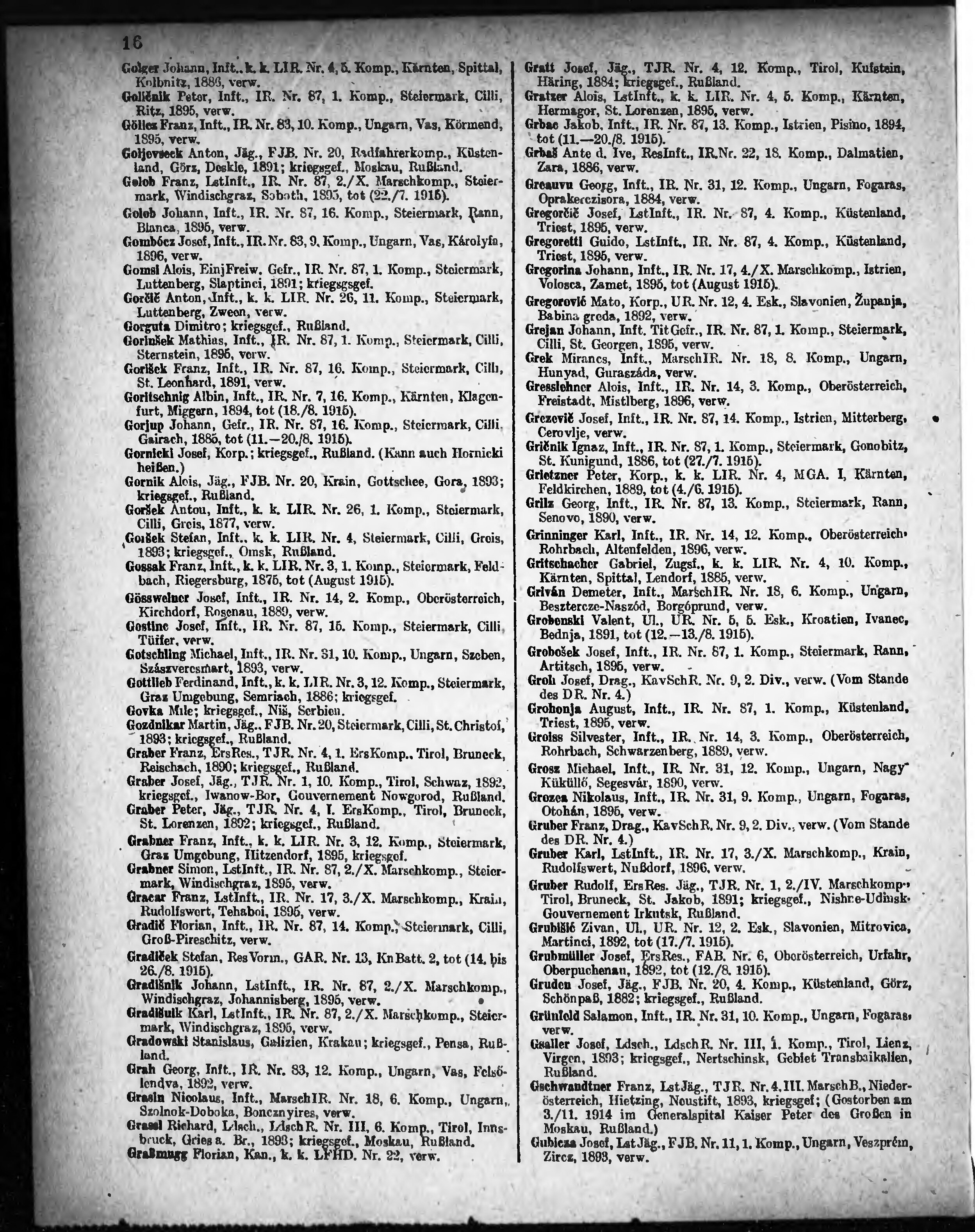 Verlustliste ausgegeben am