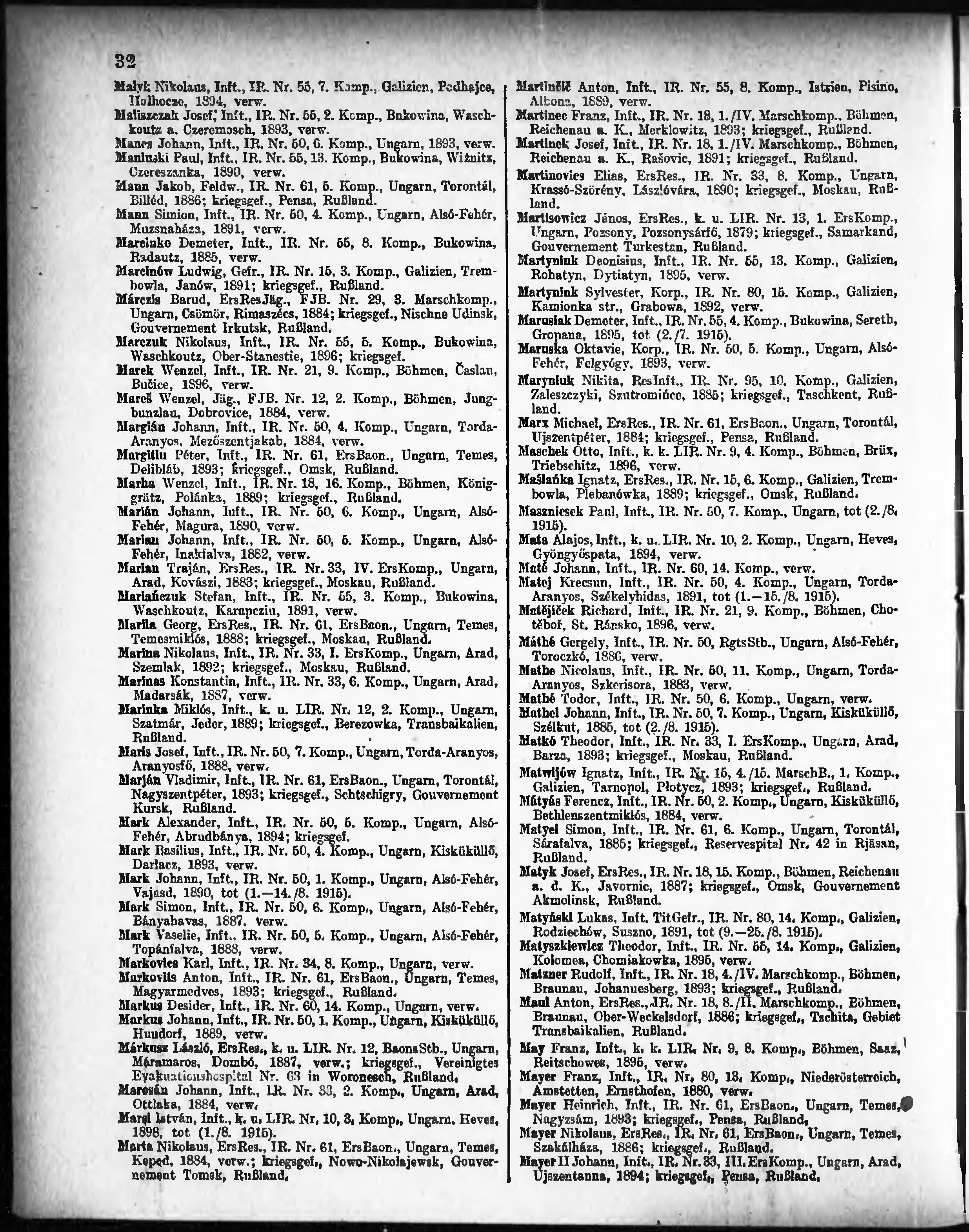 Verlustliste ausgegeben am
