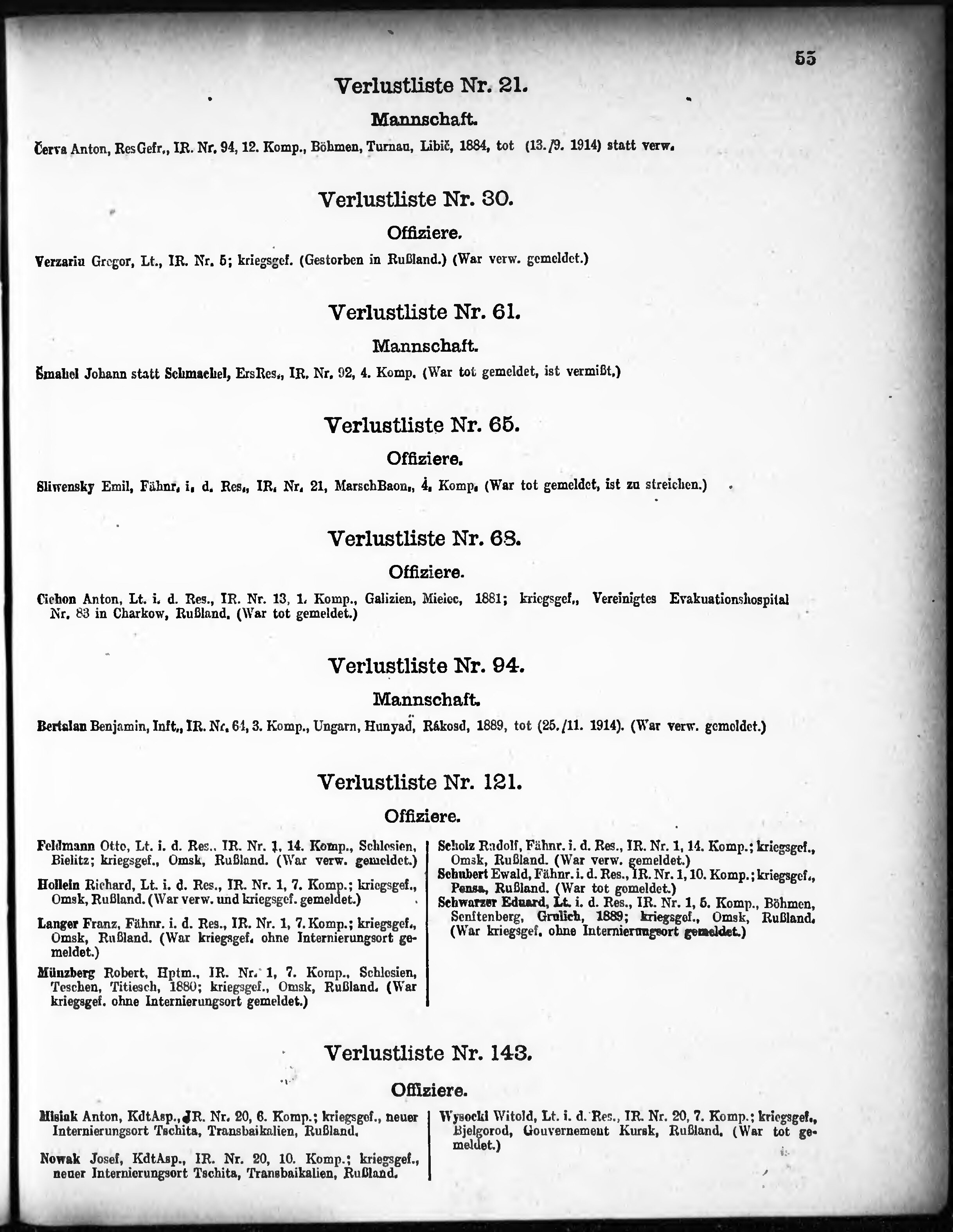 Verlustliste ausgegeben am
