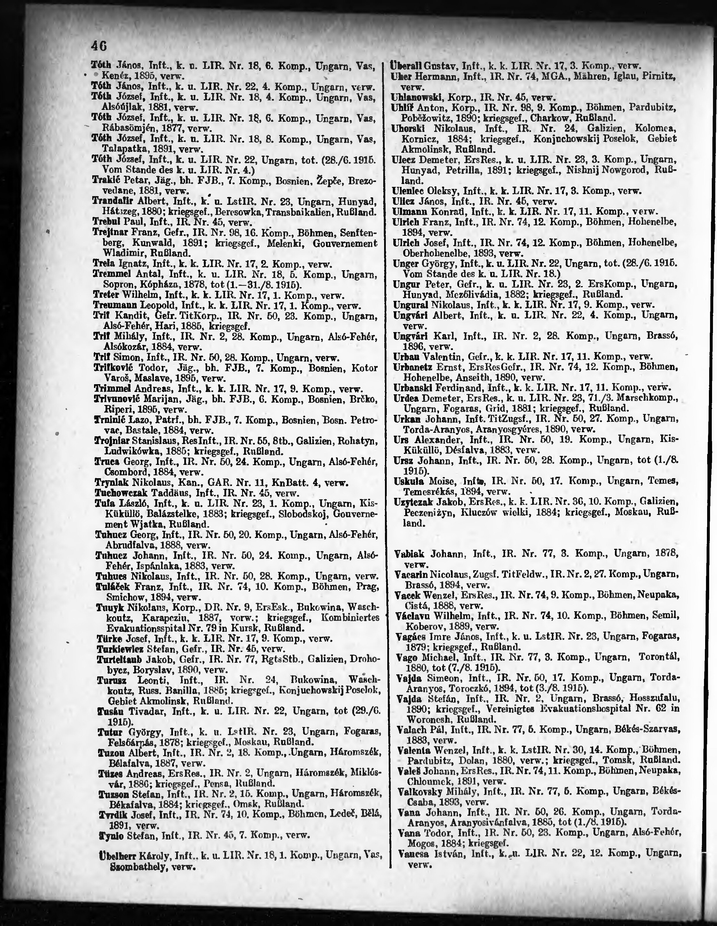 Verlustliste ausgegeben am