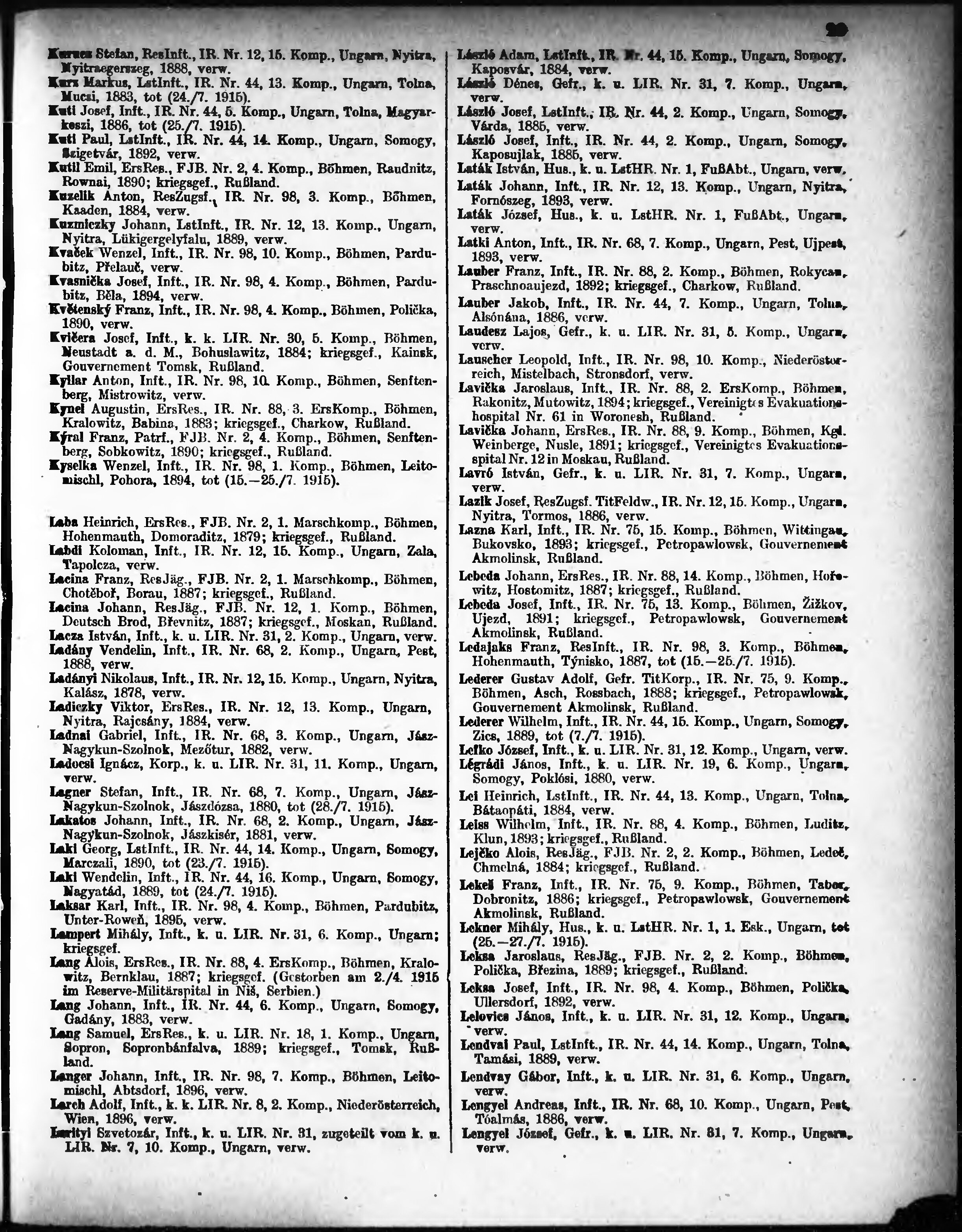 Verlustliste ausgegeben am