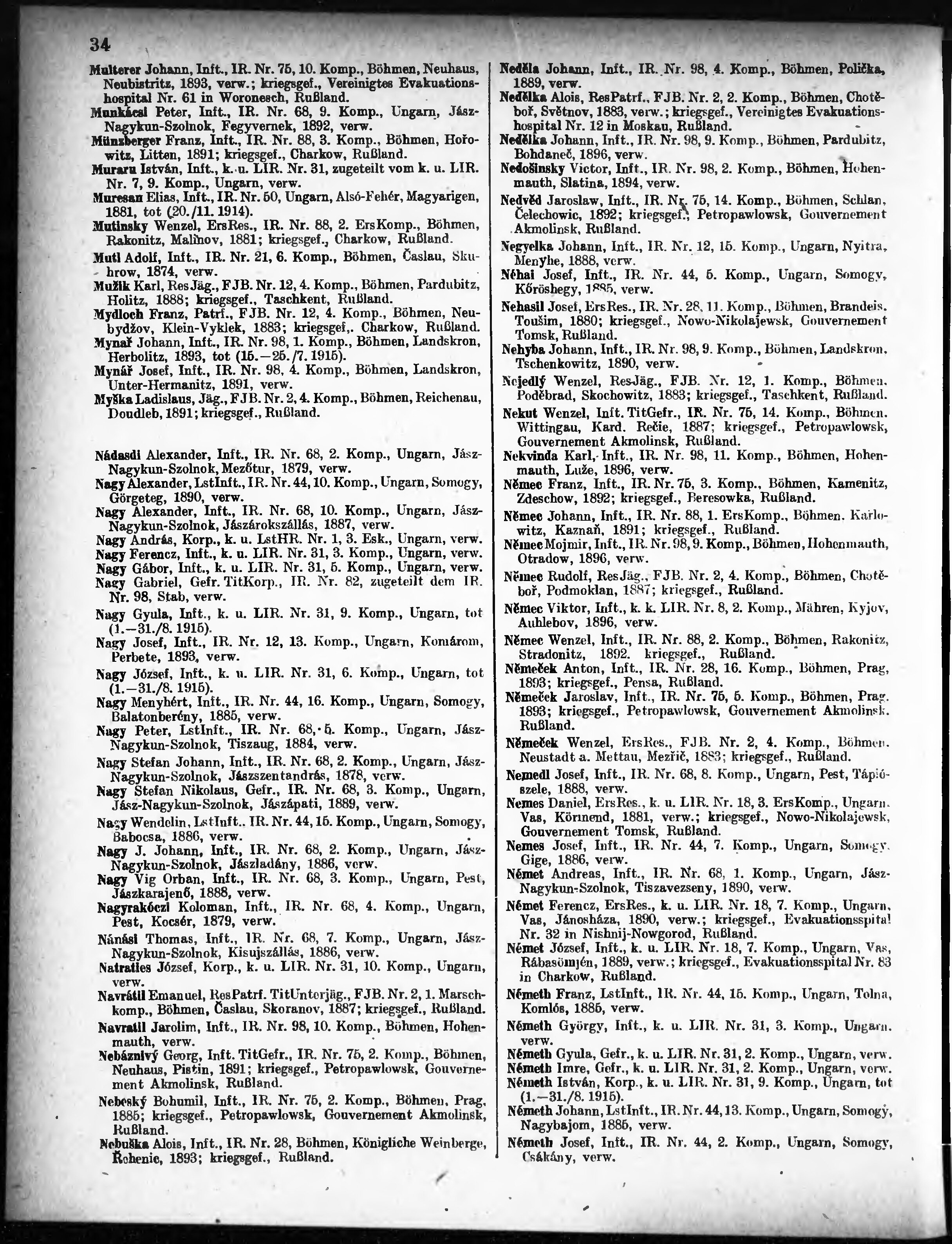 Verlustliste ausgegeben am