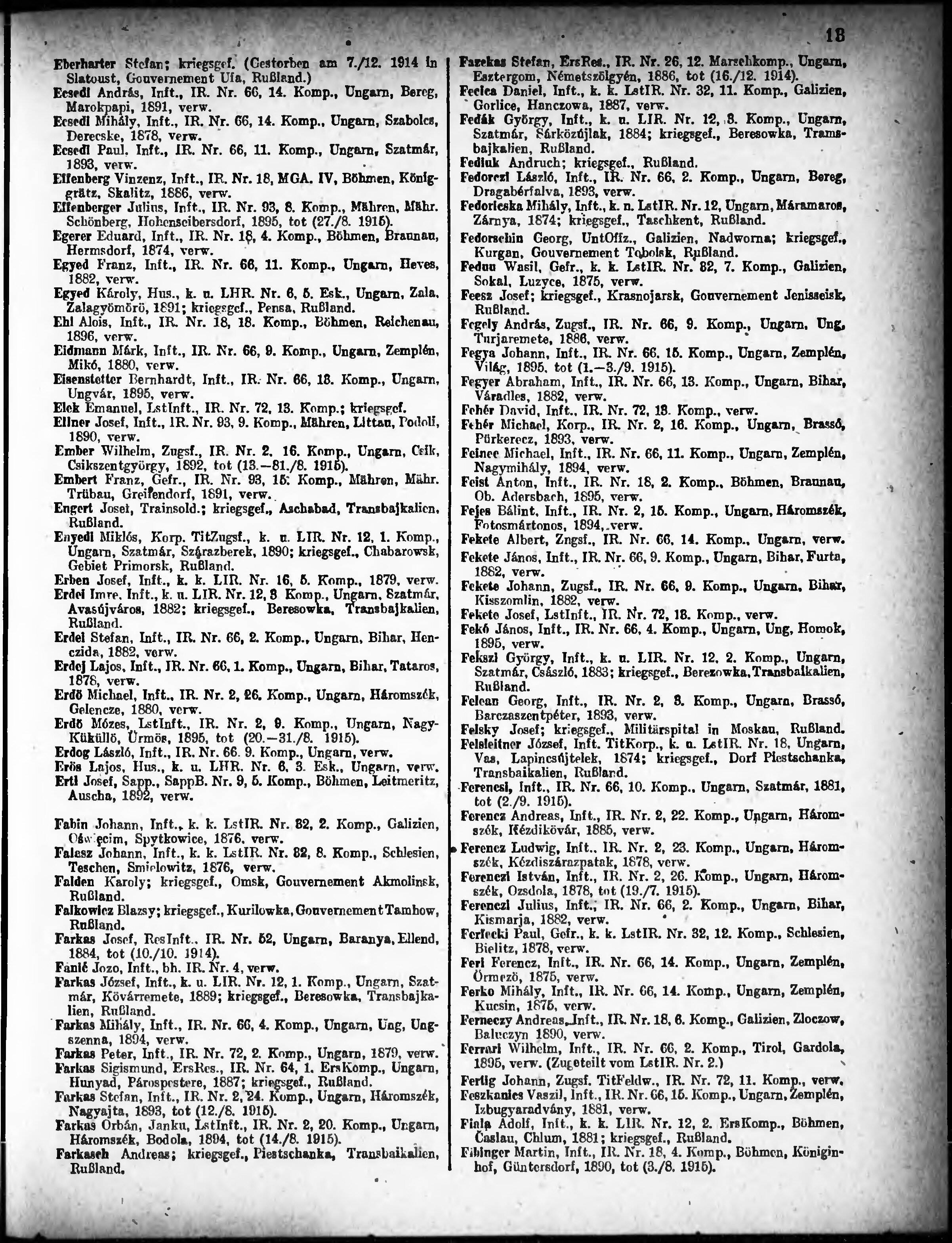 Verlustliste ausgegeben am