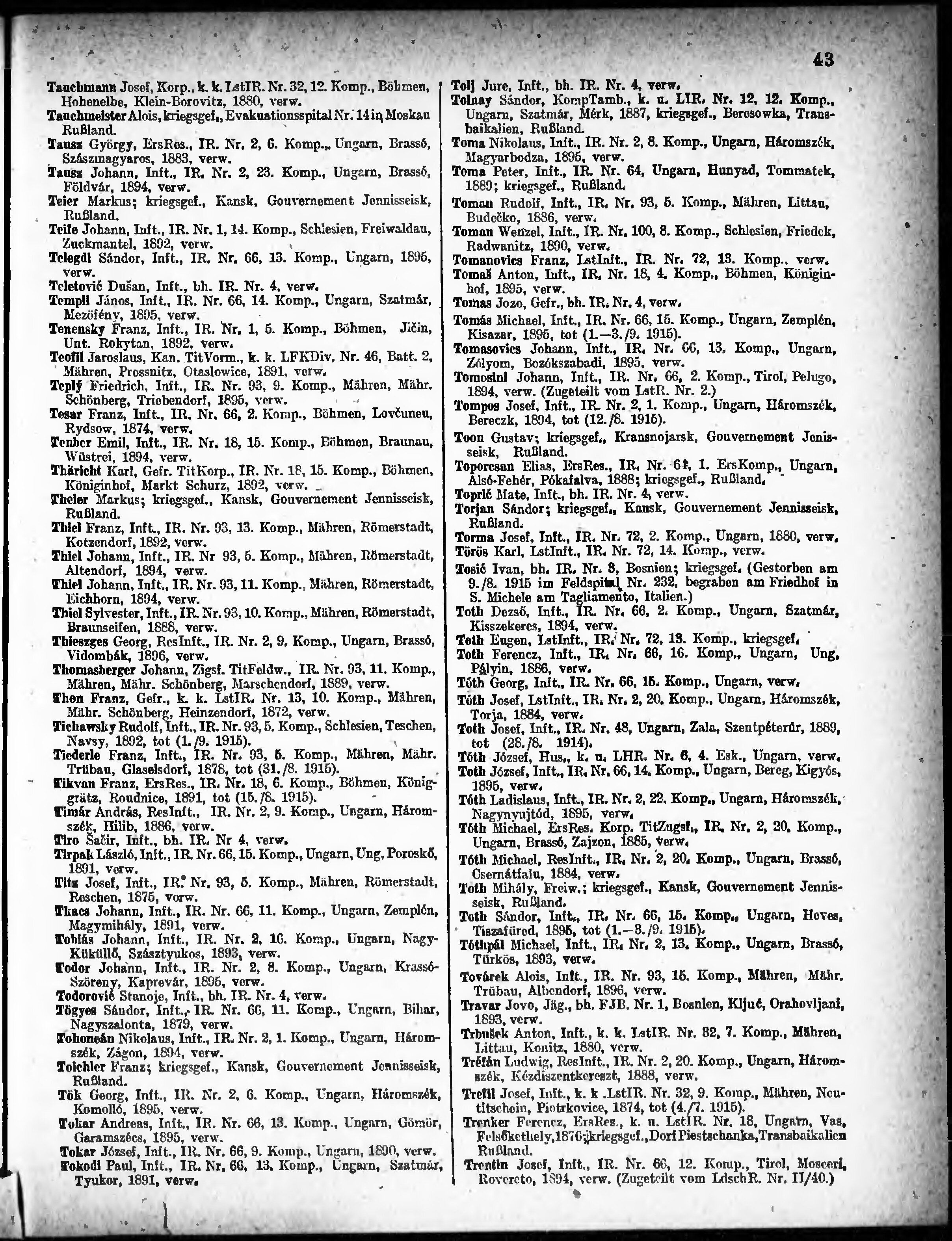 Verlustliste ausgegeben am