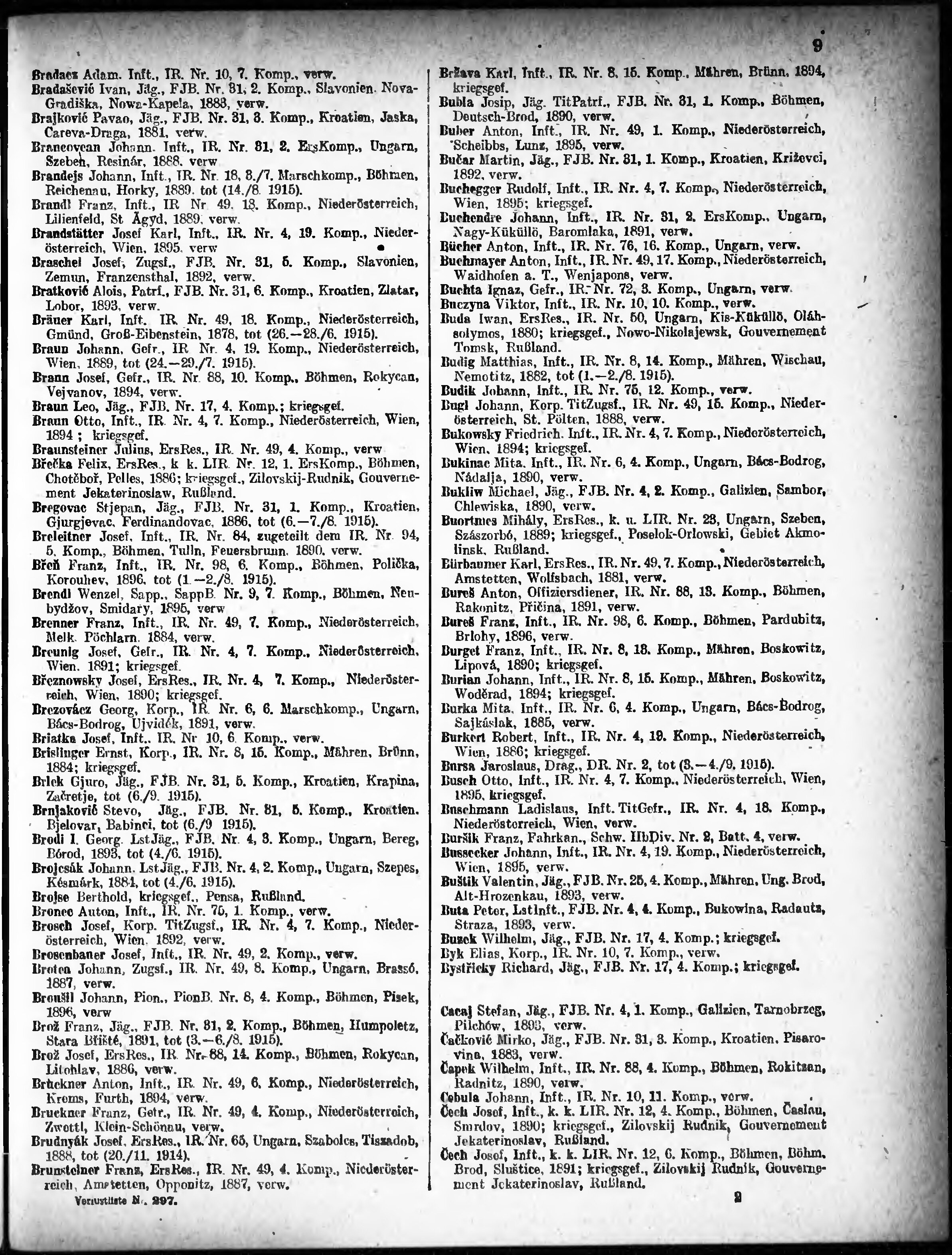 Verlustliste ausgegeben am