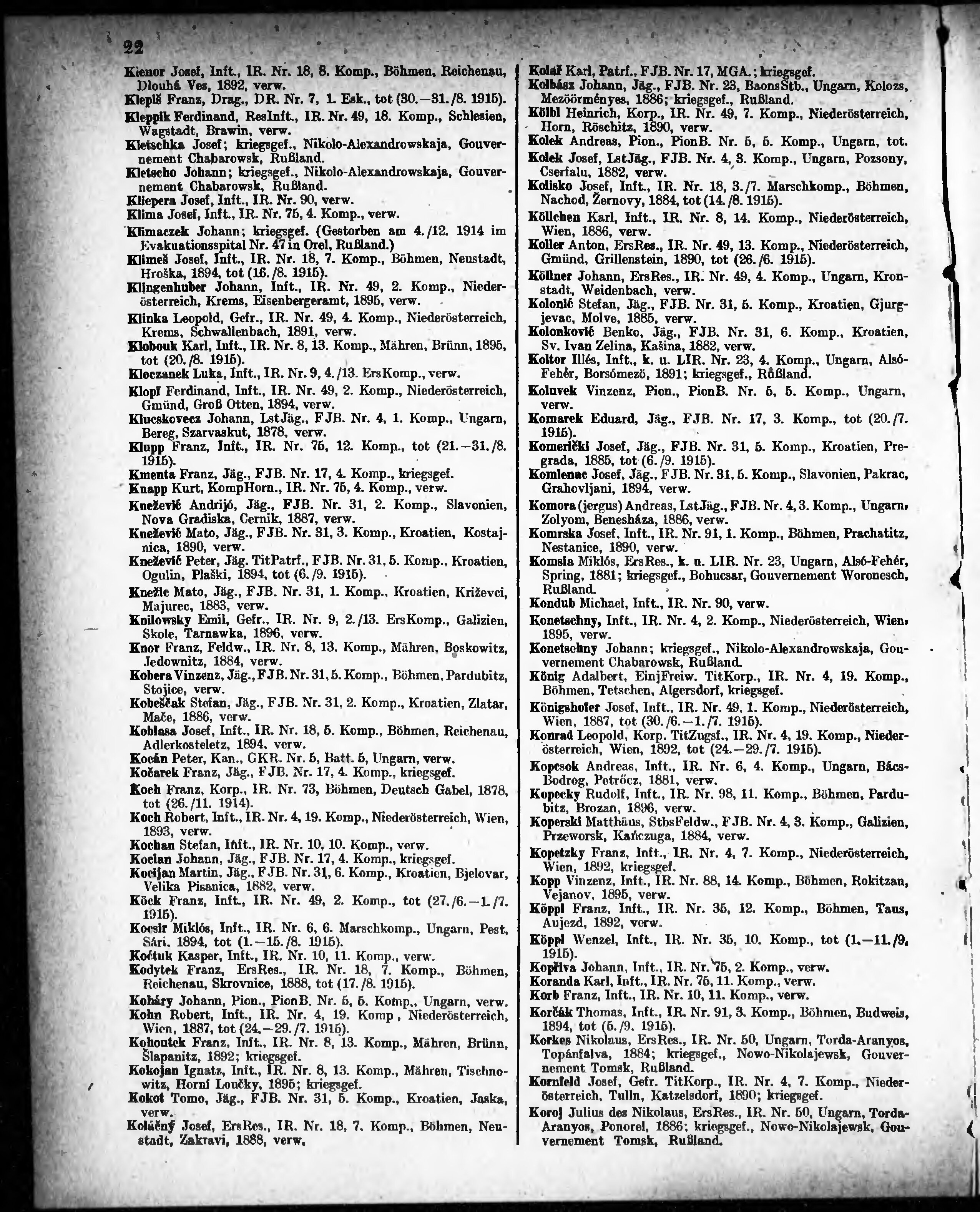 Verlustliste ausgegeben am