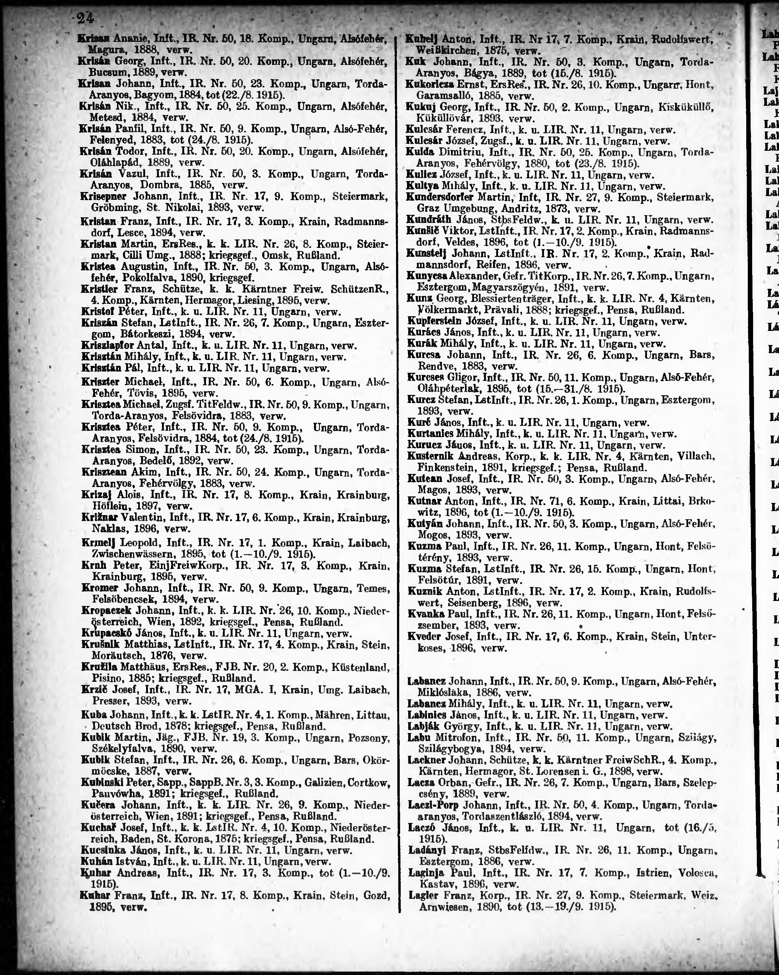 Verlustliste ausgegeben am