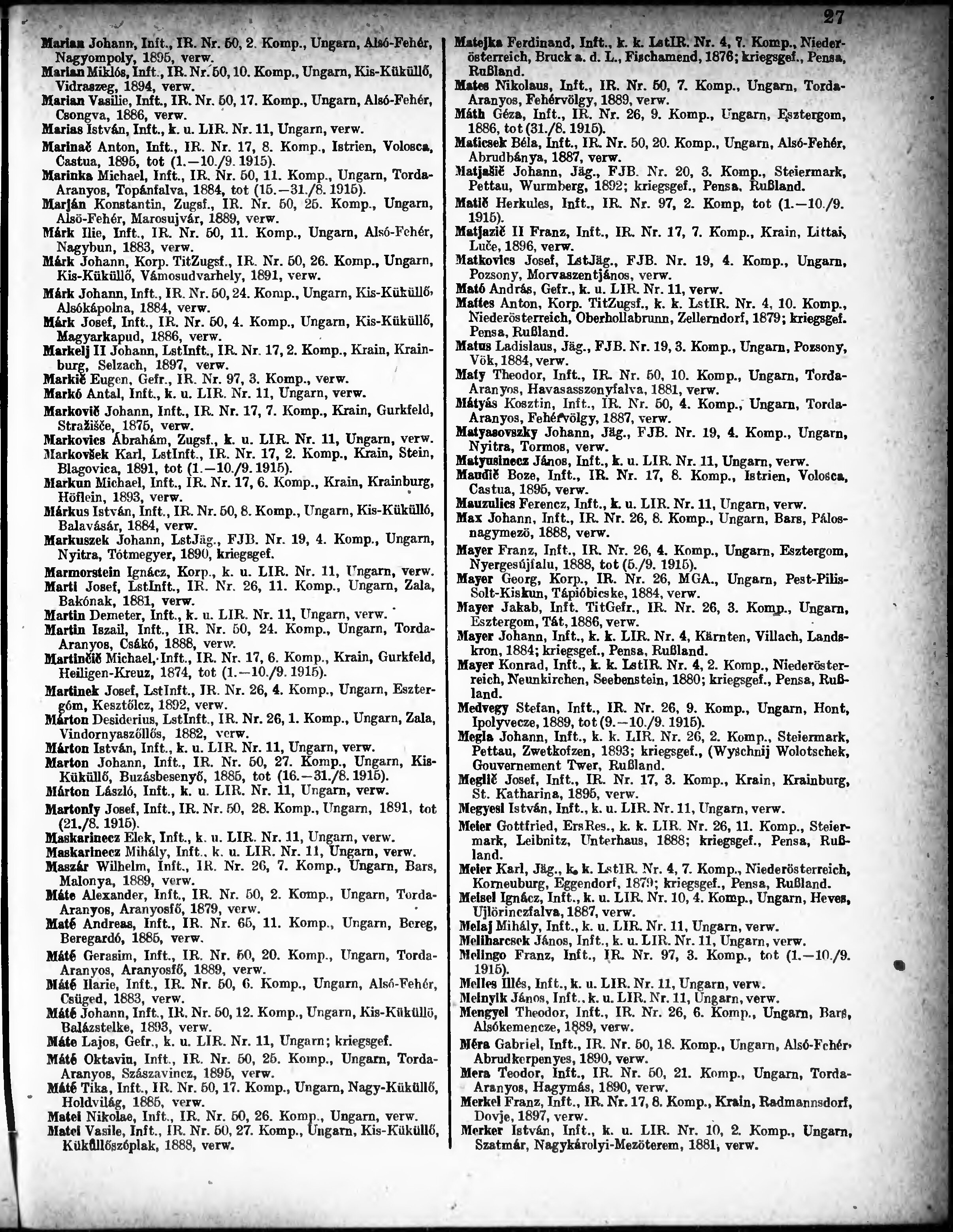 Verlustliste ausgegeben am