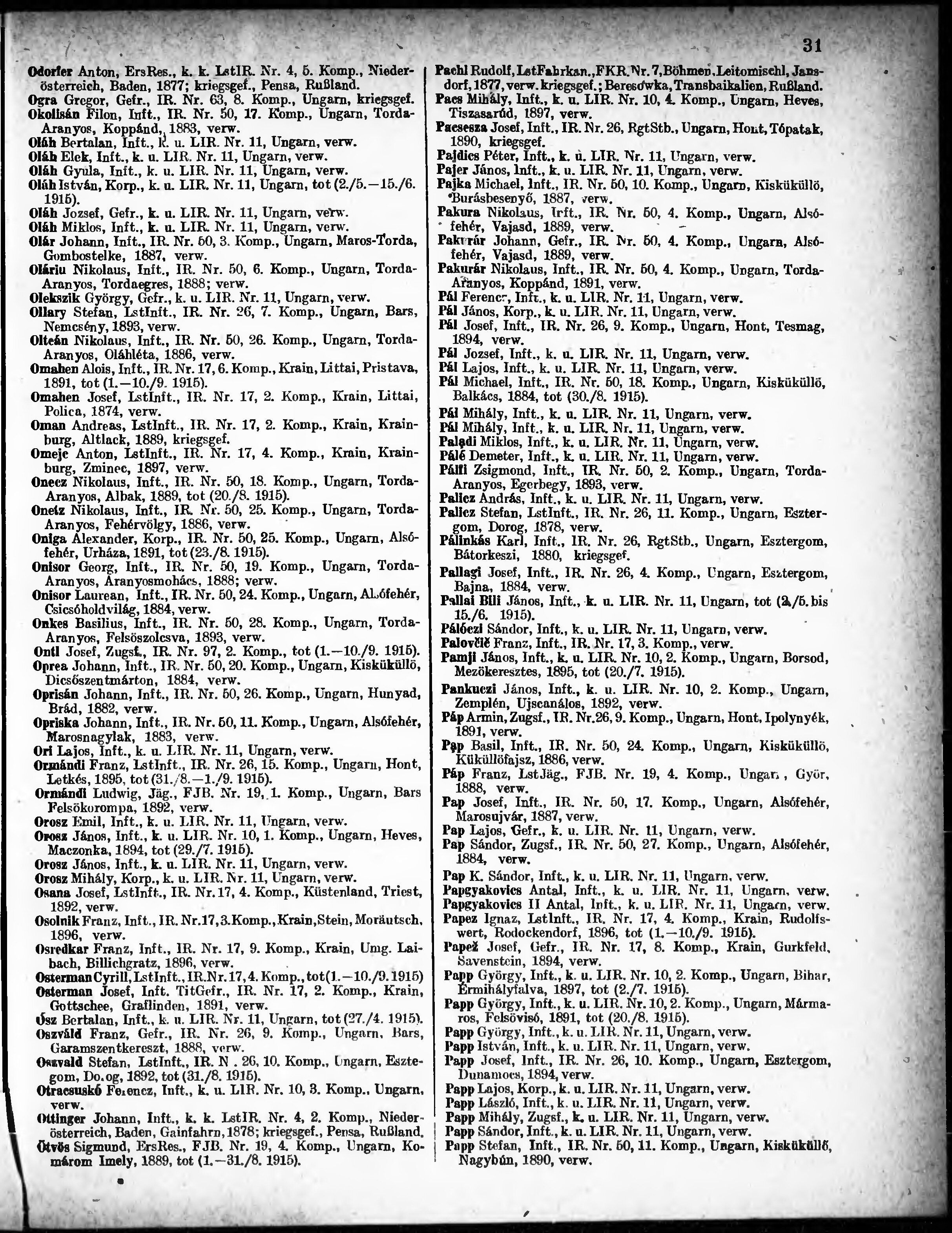 Verlustliste ausgegeben am