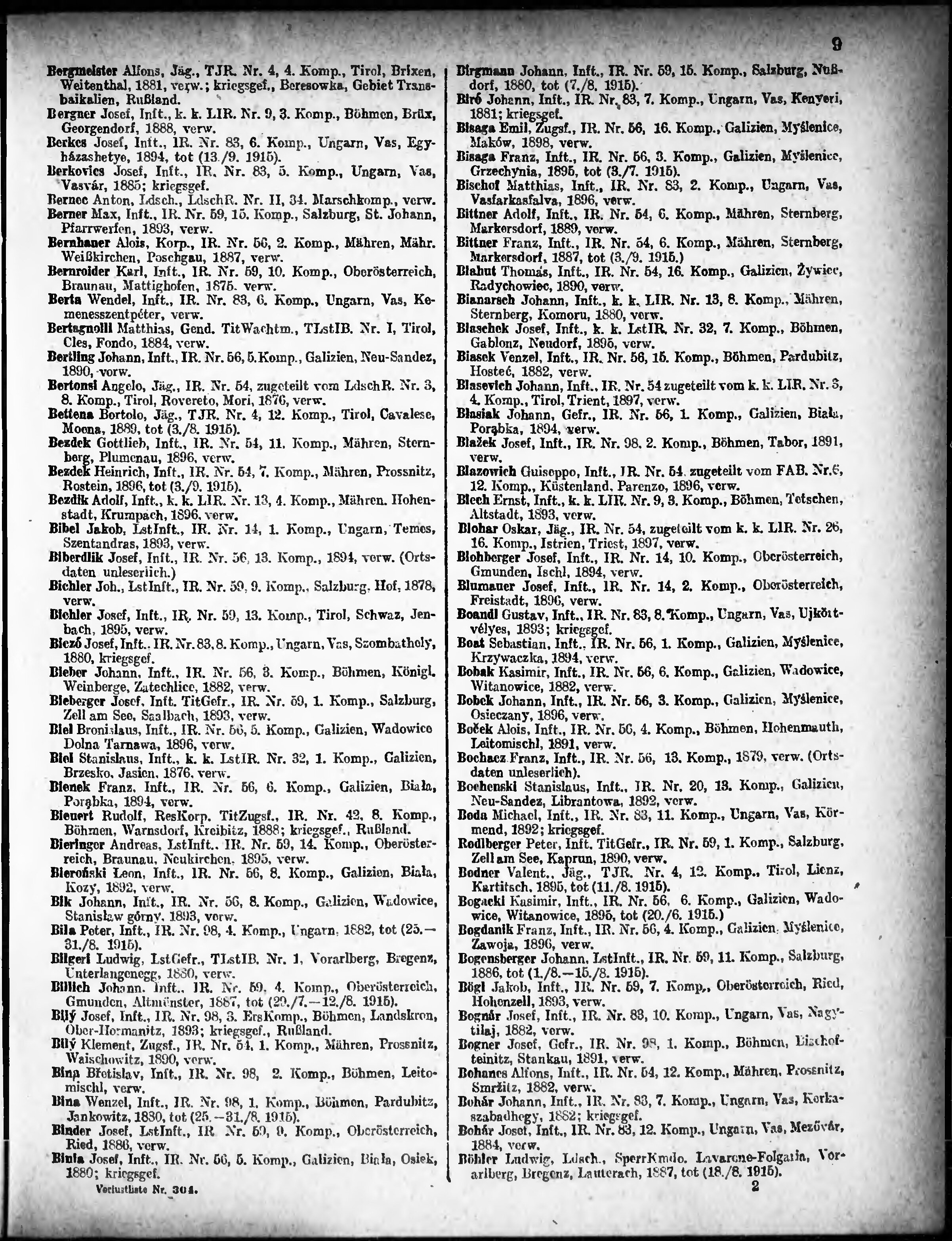 Verlustliste ausgegeben am